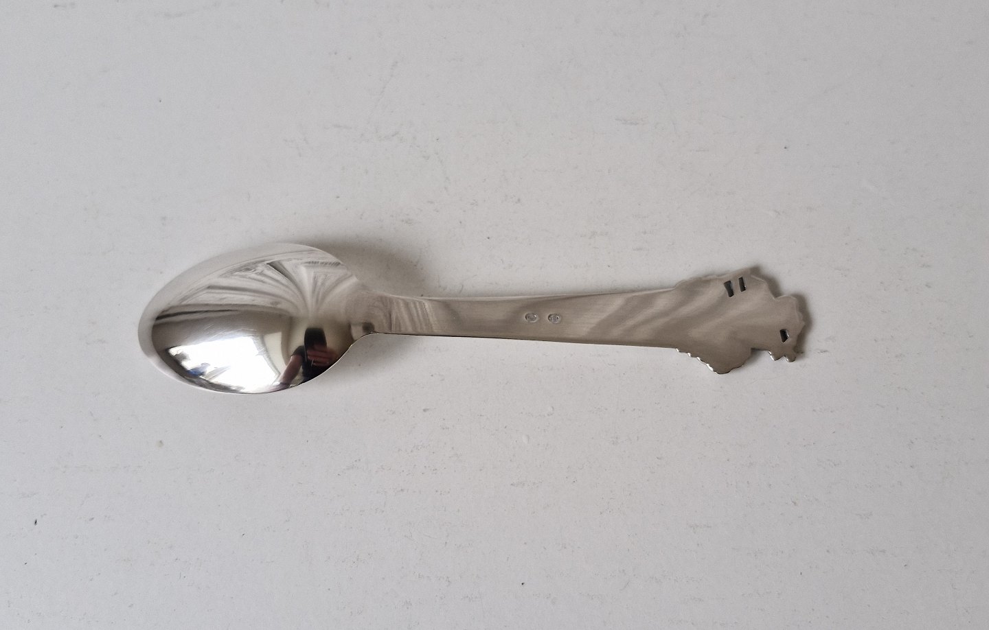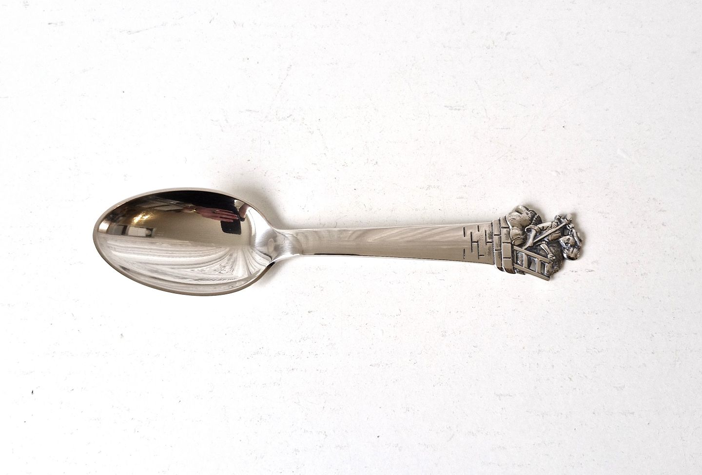 Beskrivelse: H.C.Andersen barneske i sølv - "Hyrtinden og skorstensfejeren"