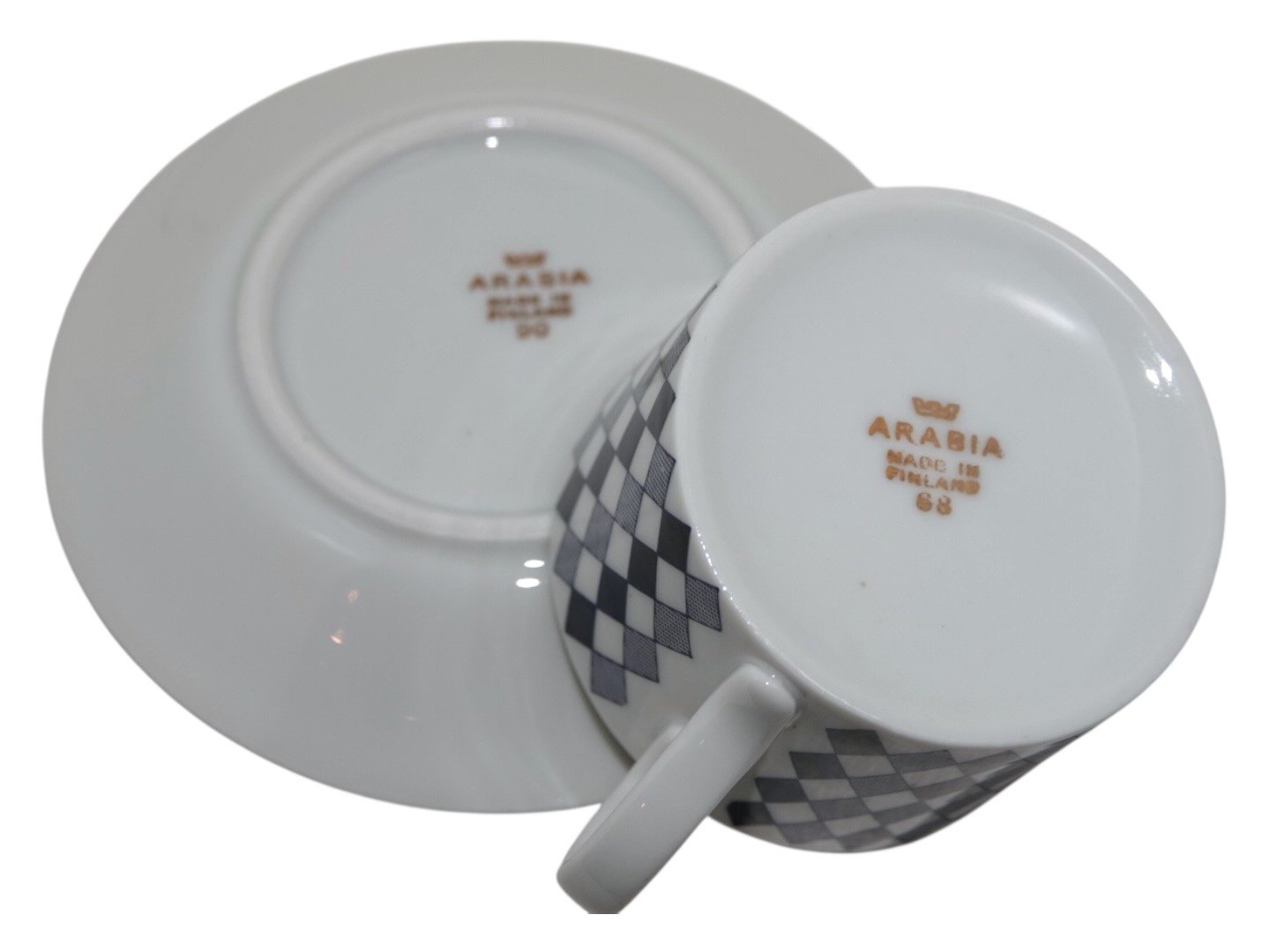 Description: Arabia Finland Pajazzo, small coffee cup with matching saucer.