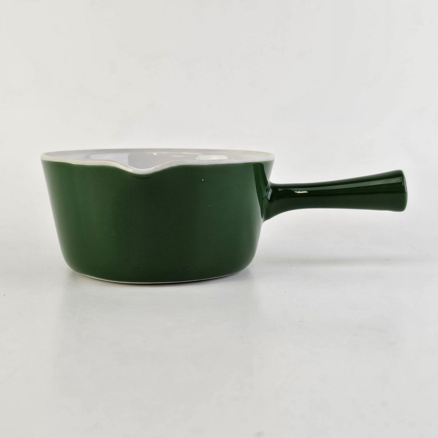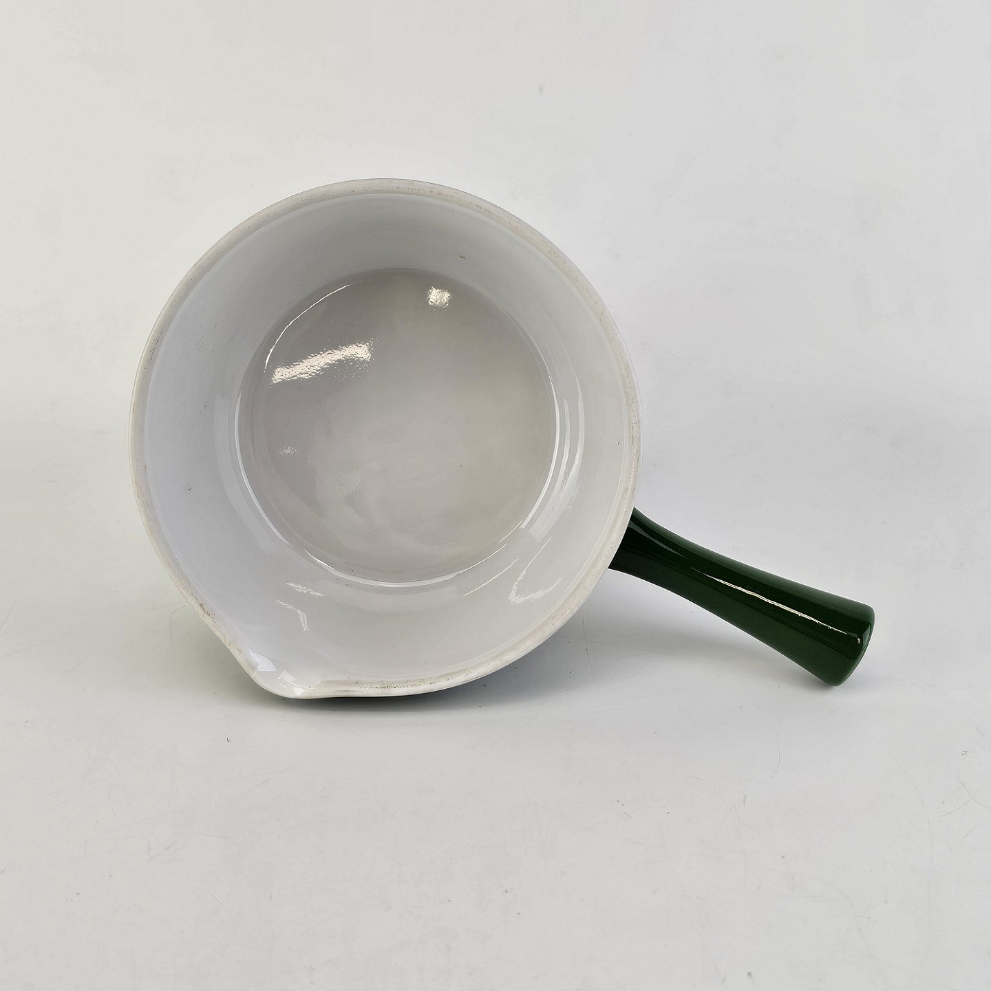 Beskrivelse: Smørnæb med håndtag og hældetud i porcelæn fra stellet Grøn Glasurfarvet