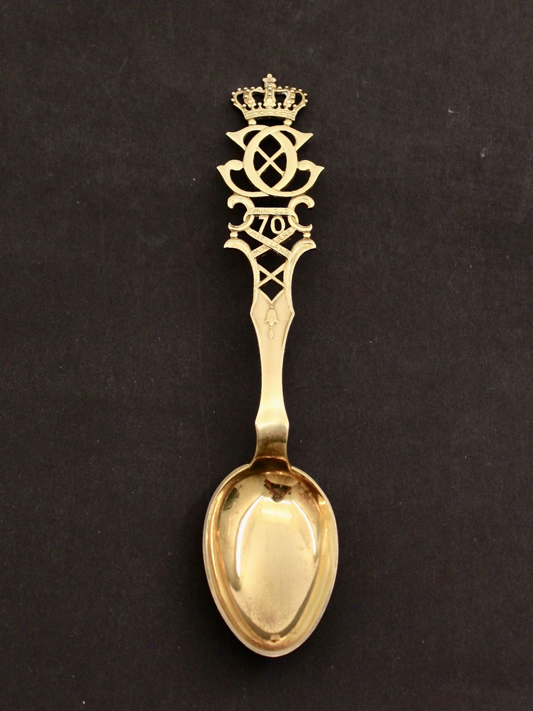 A Michelsen forgyldt sterling sølv minde ske Chr. X 70 år