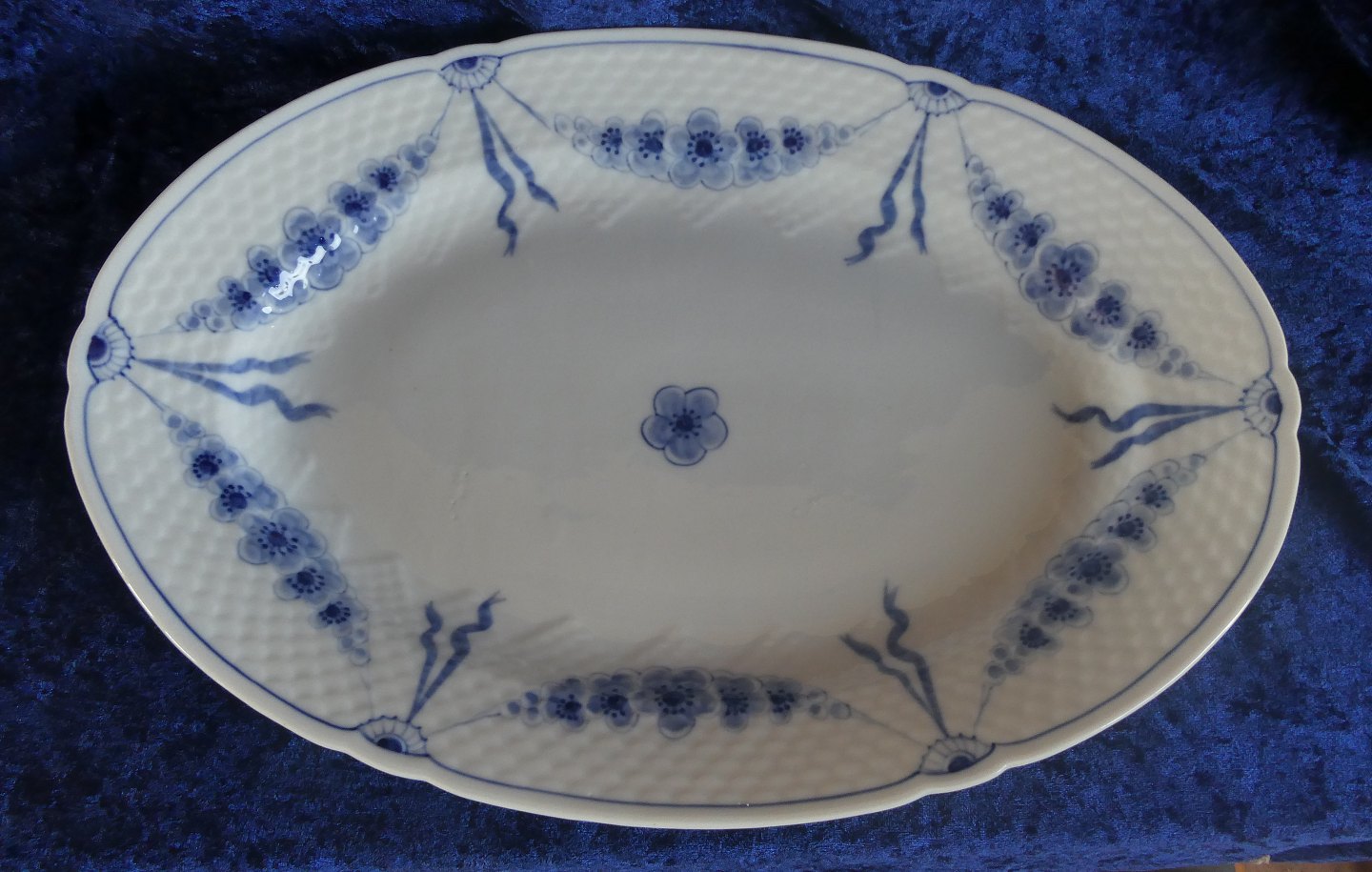 Stort, ovalt serveringsfad i 1.sort. fra perioden 1915-1948, og i pæn, brugt stand.