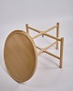 Beskrivelse: Hans J. Wegner bakkebord, model pp35/54. Ask med wengé-detaljer. PP Møbler. Vendbare plader og sammenklappeligt. H: 48 cm, Dia: 62 cm, B: 50 cm.