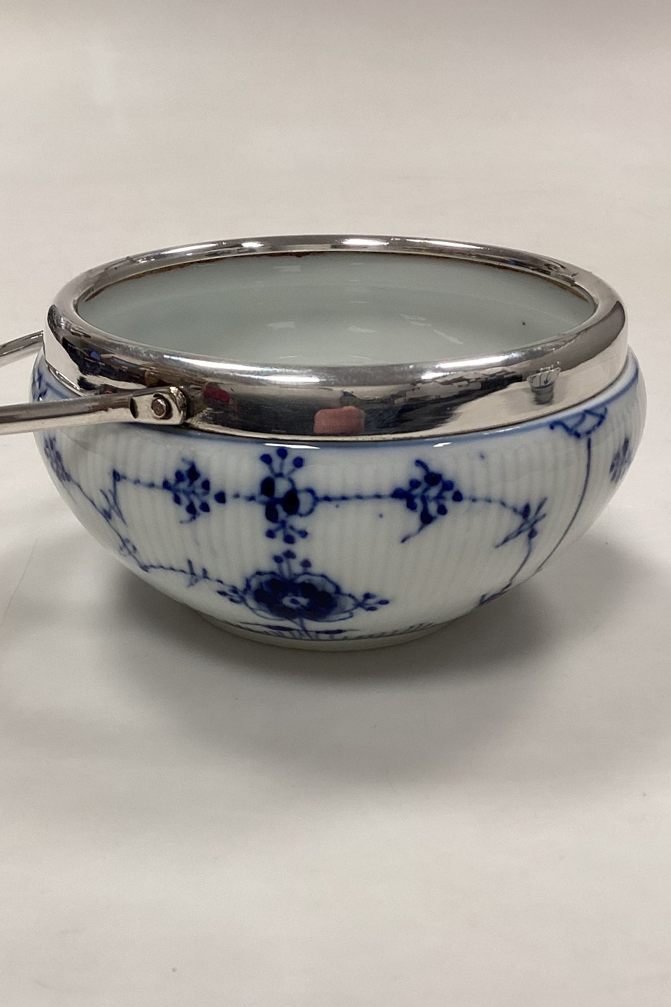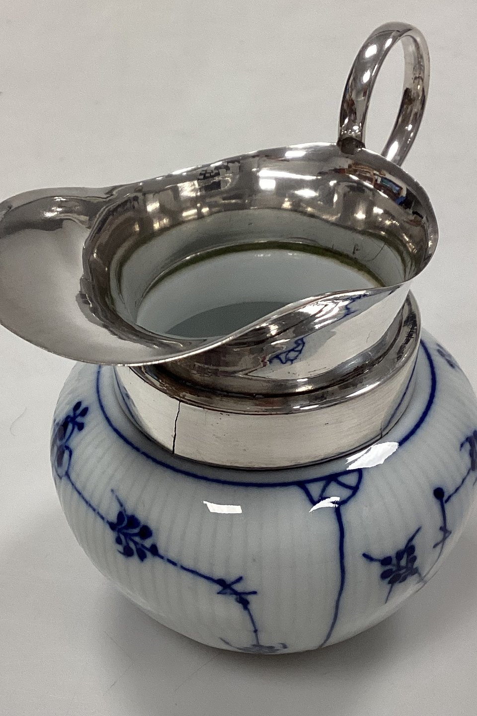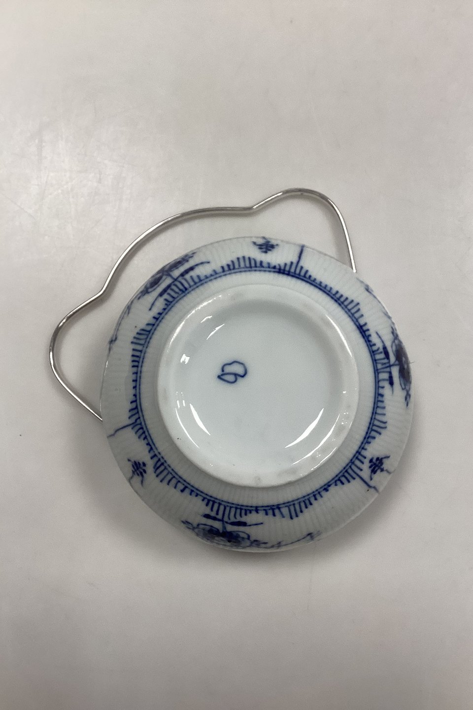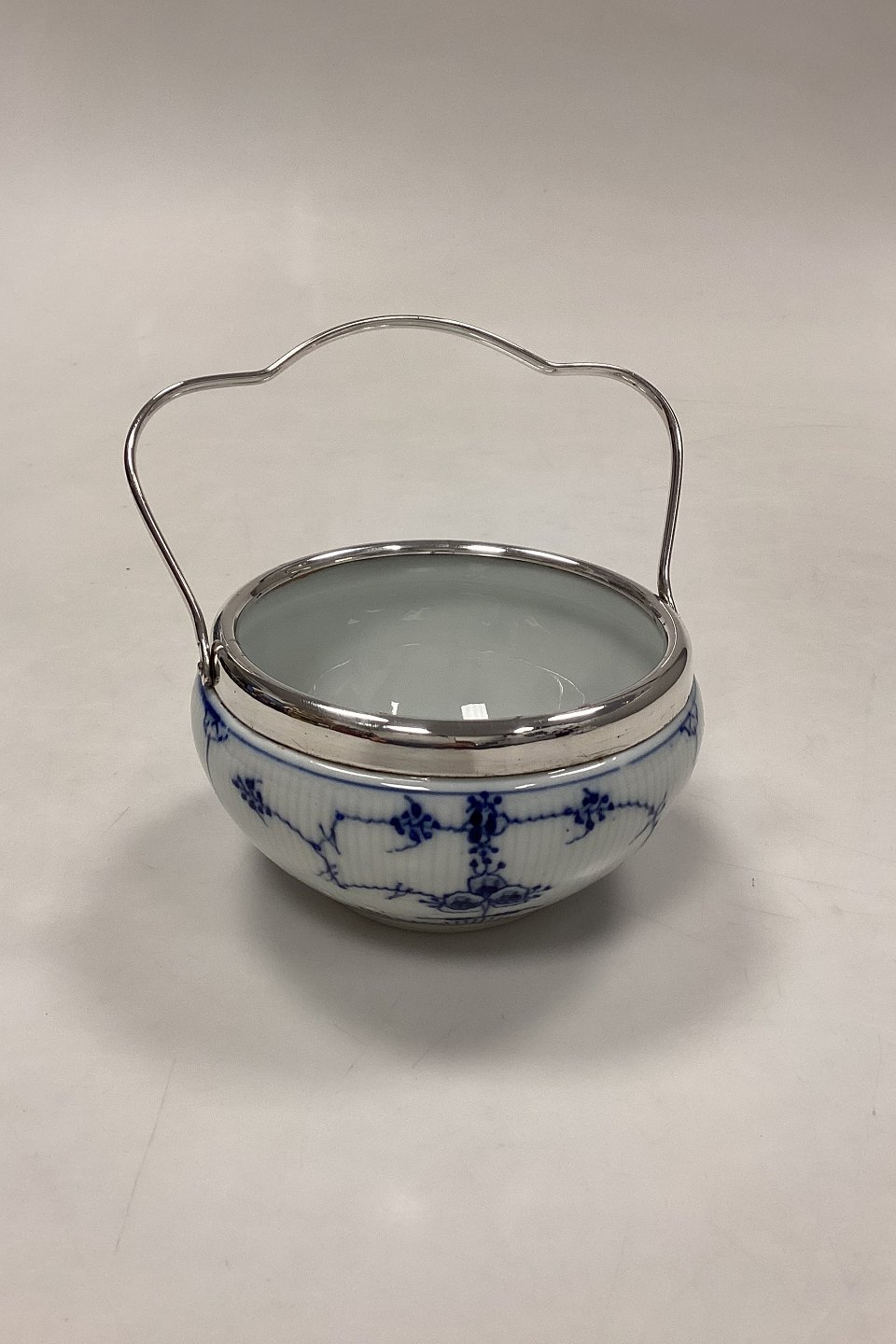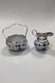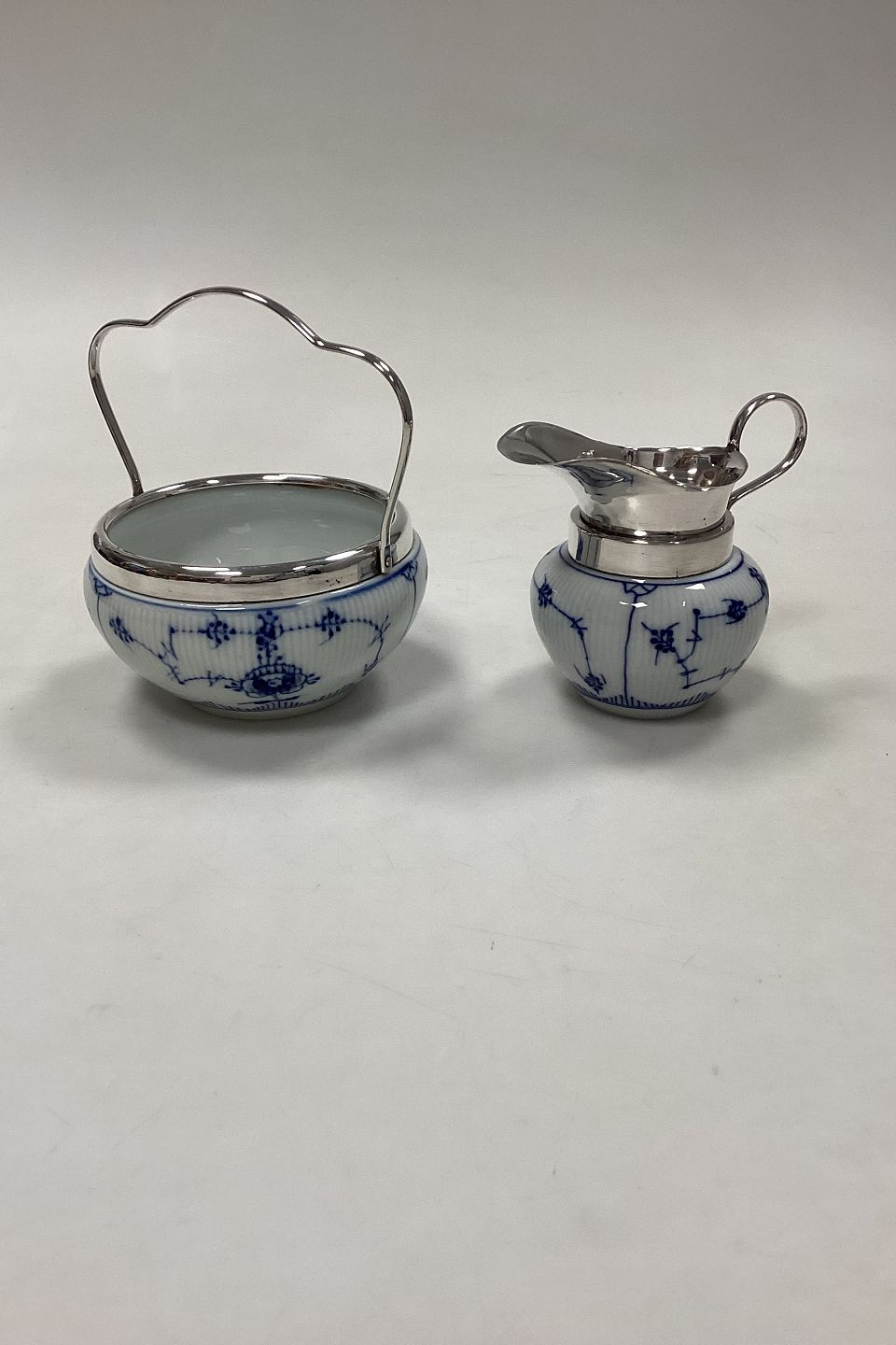 Description: German blue-fluted Sugar and Cream set, with metal mounting, possibly nickel.