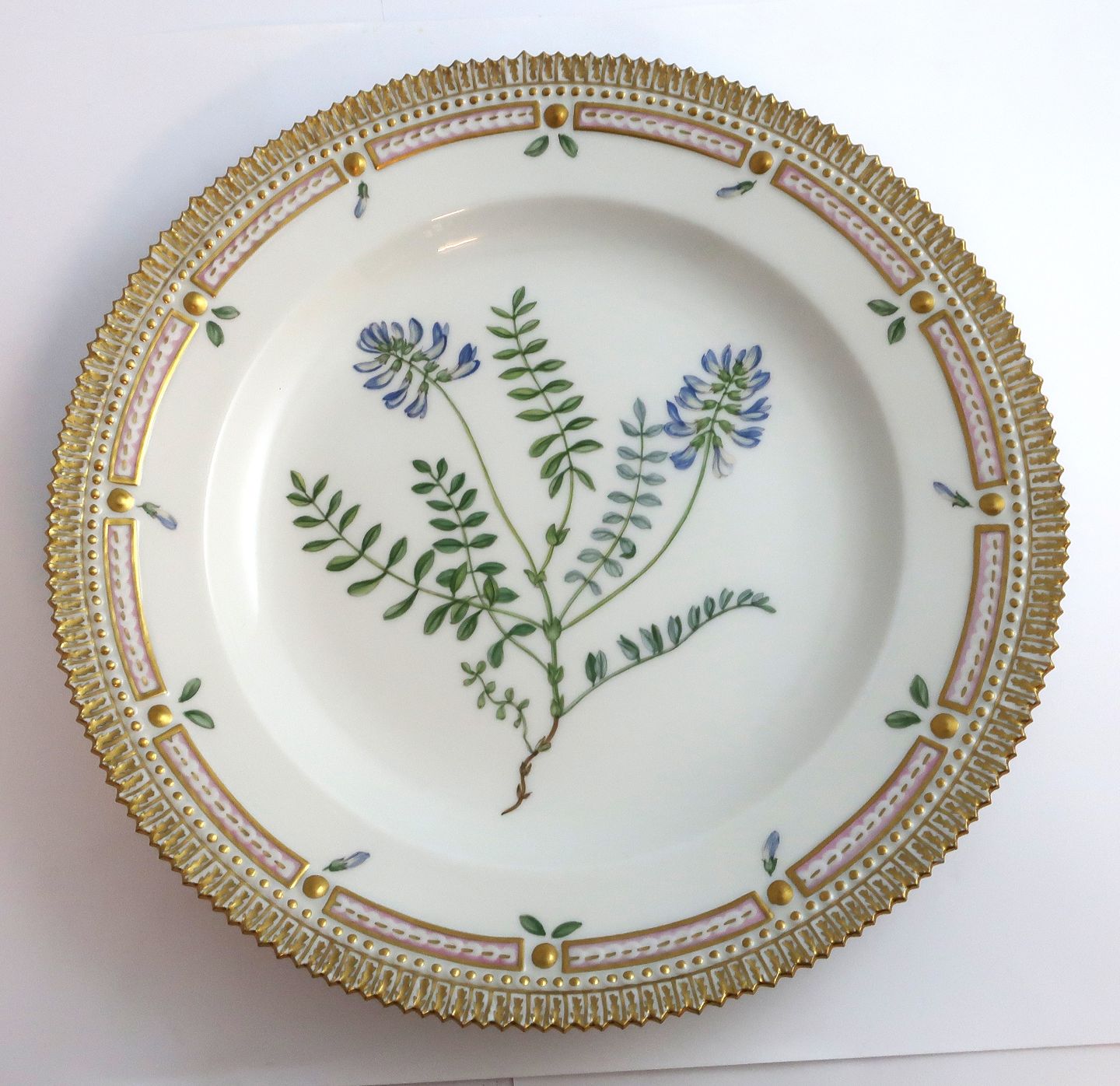 Description: Royal Copenhagen Flora Danica. Dinner plate. Design # 3549. Diameter 25 cm. (1 quality). Oxytropis lapponica