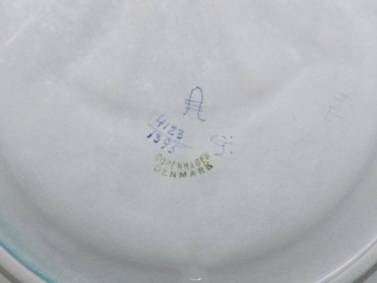 There are crazing and slight discoloration in the glaze and one hairline crack at the edge, please see the last picture. Otherwise excellent condition.