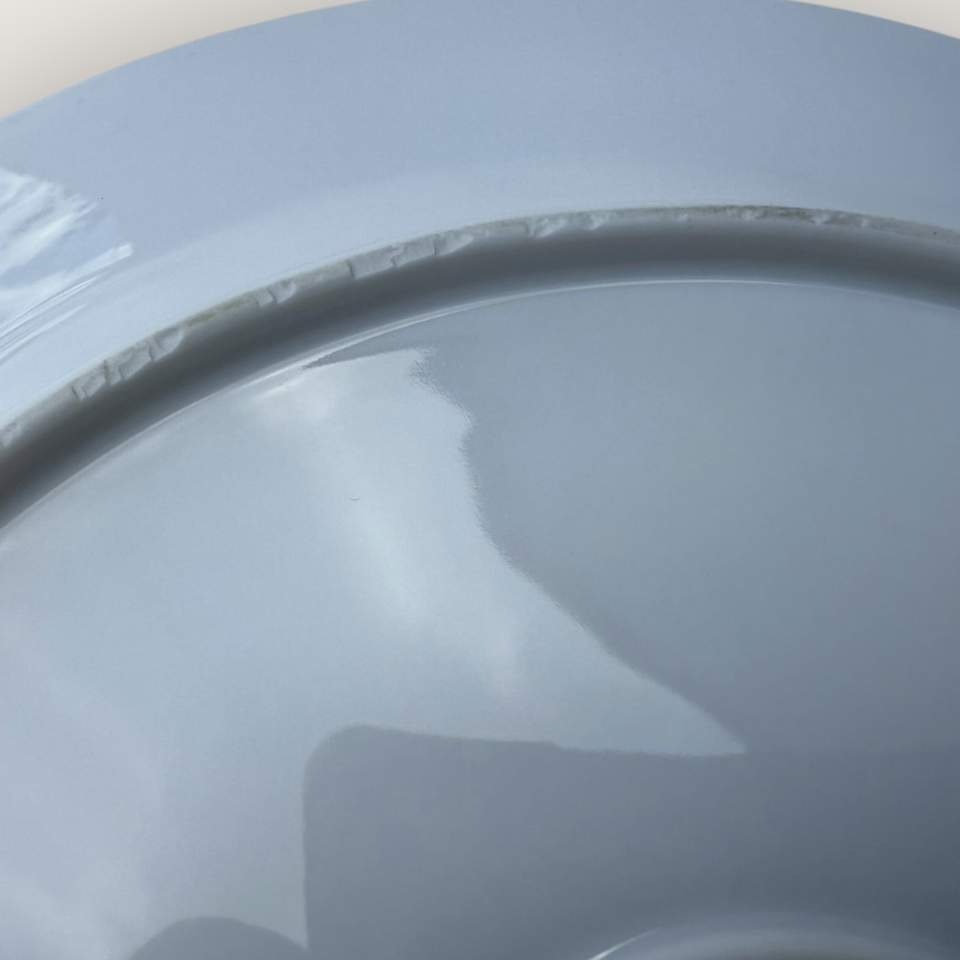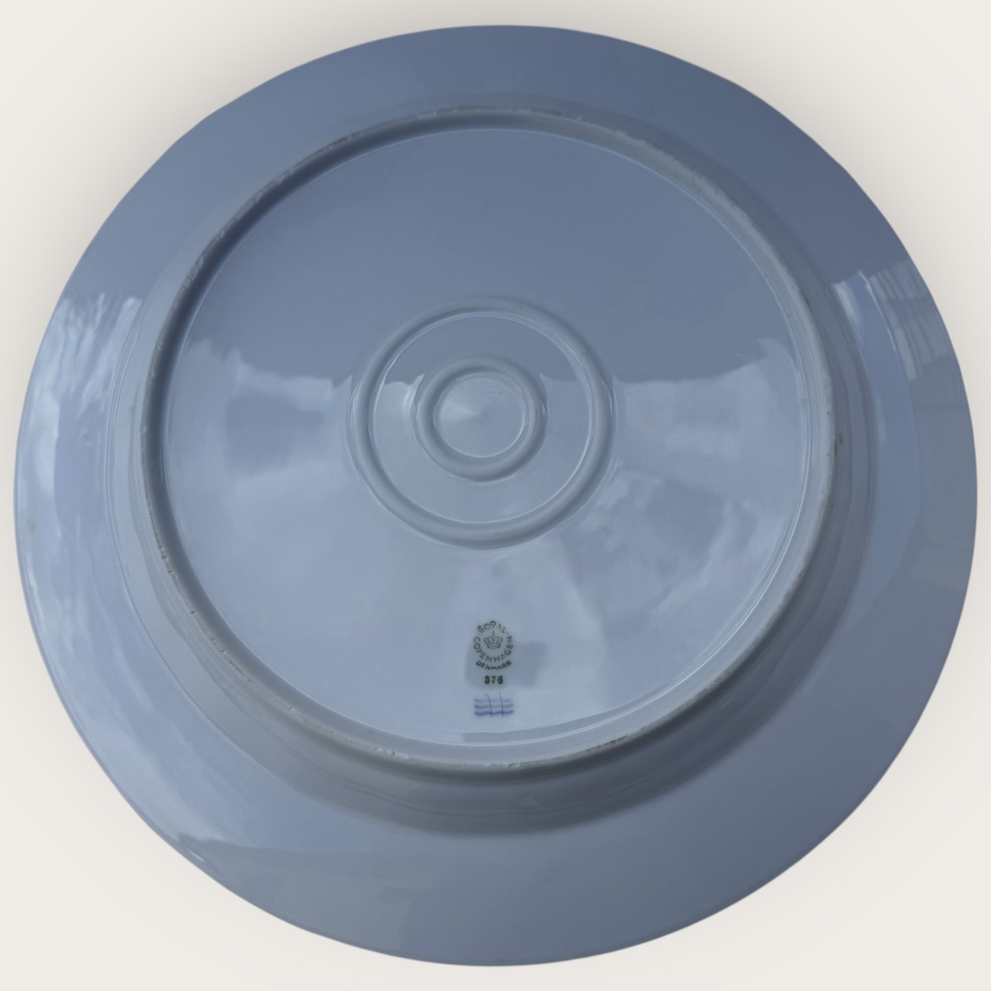 Description: Royal Copenhagen, Hvid kantet / Weißrand ohne Dekor, Runde Servierplatte Nr. 373, 33 cm Durchmesser, 3. Klasse, leichte Unebenheit am unteren Rand (siehe Foto), sonst guter Zustand.