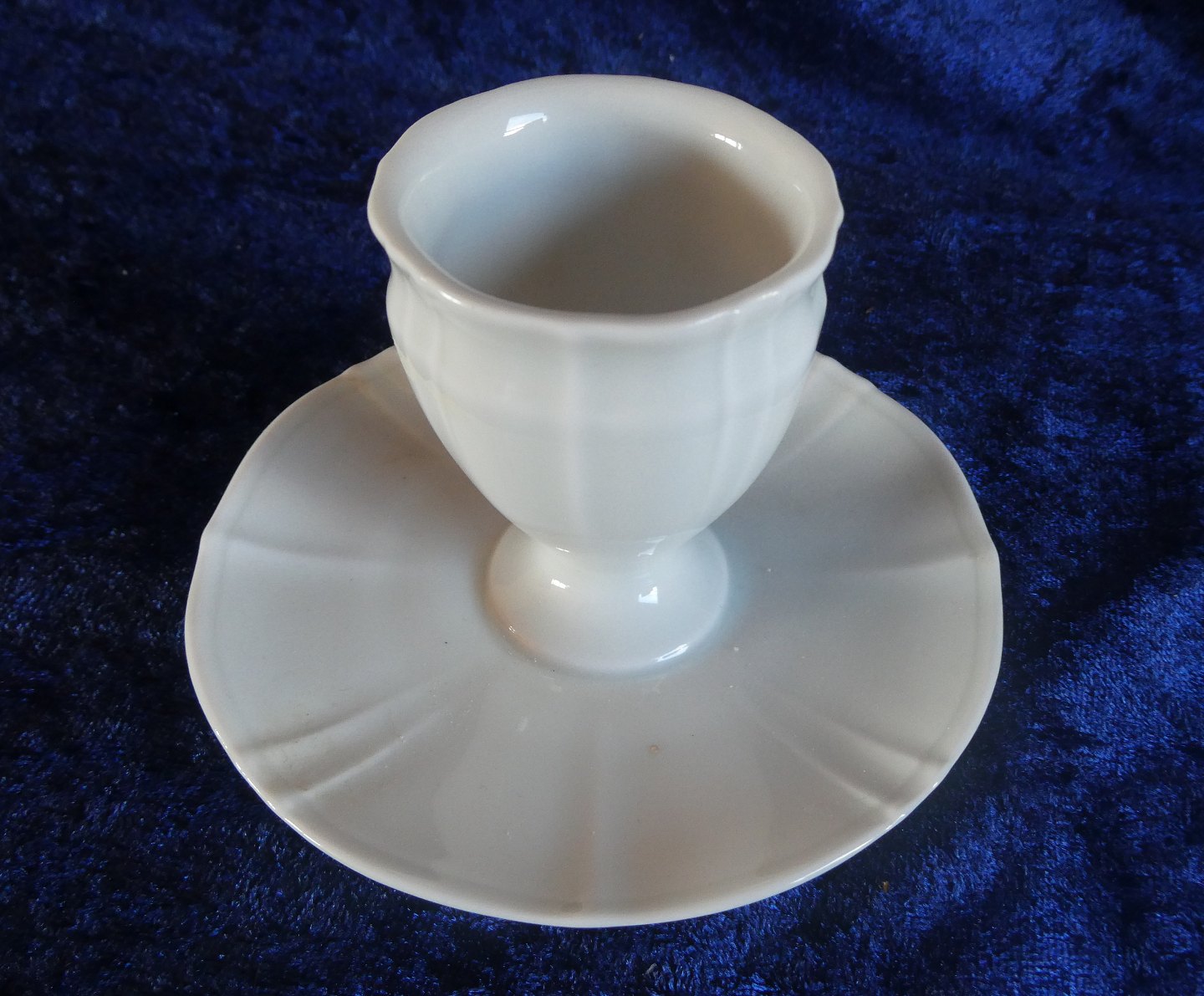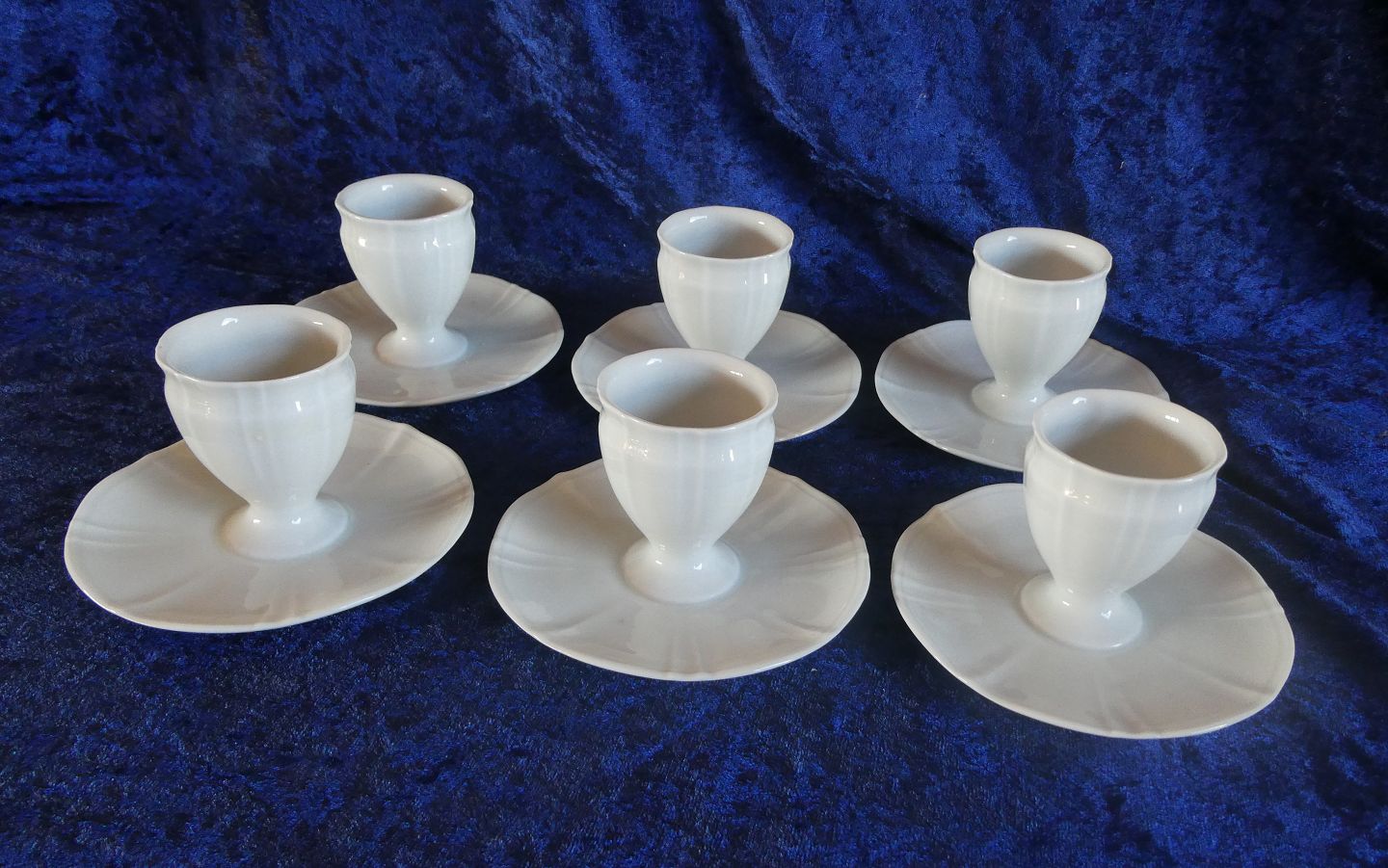 Set von 6 Eierbechern auf festen Untertasse Nr. 695 aus 2. Wahl und in gutem, gebrauchtem Zustand.