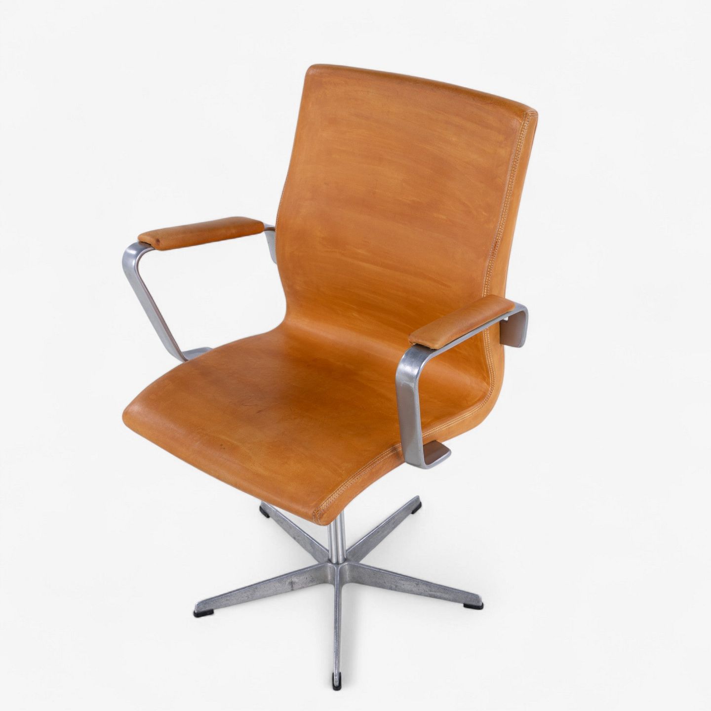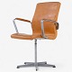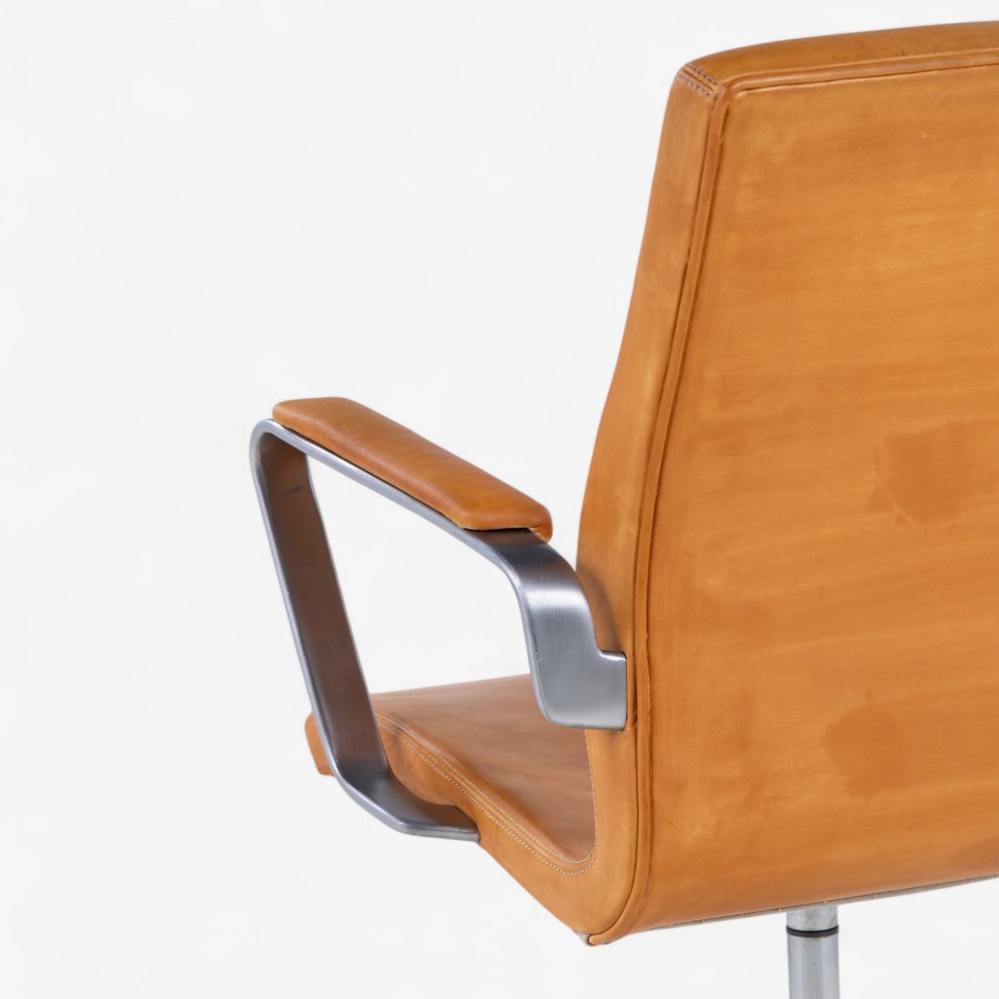 Low-backed 'Oxford' office chair in patinated natural leather on a steel frame.