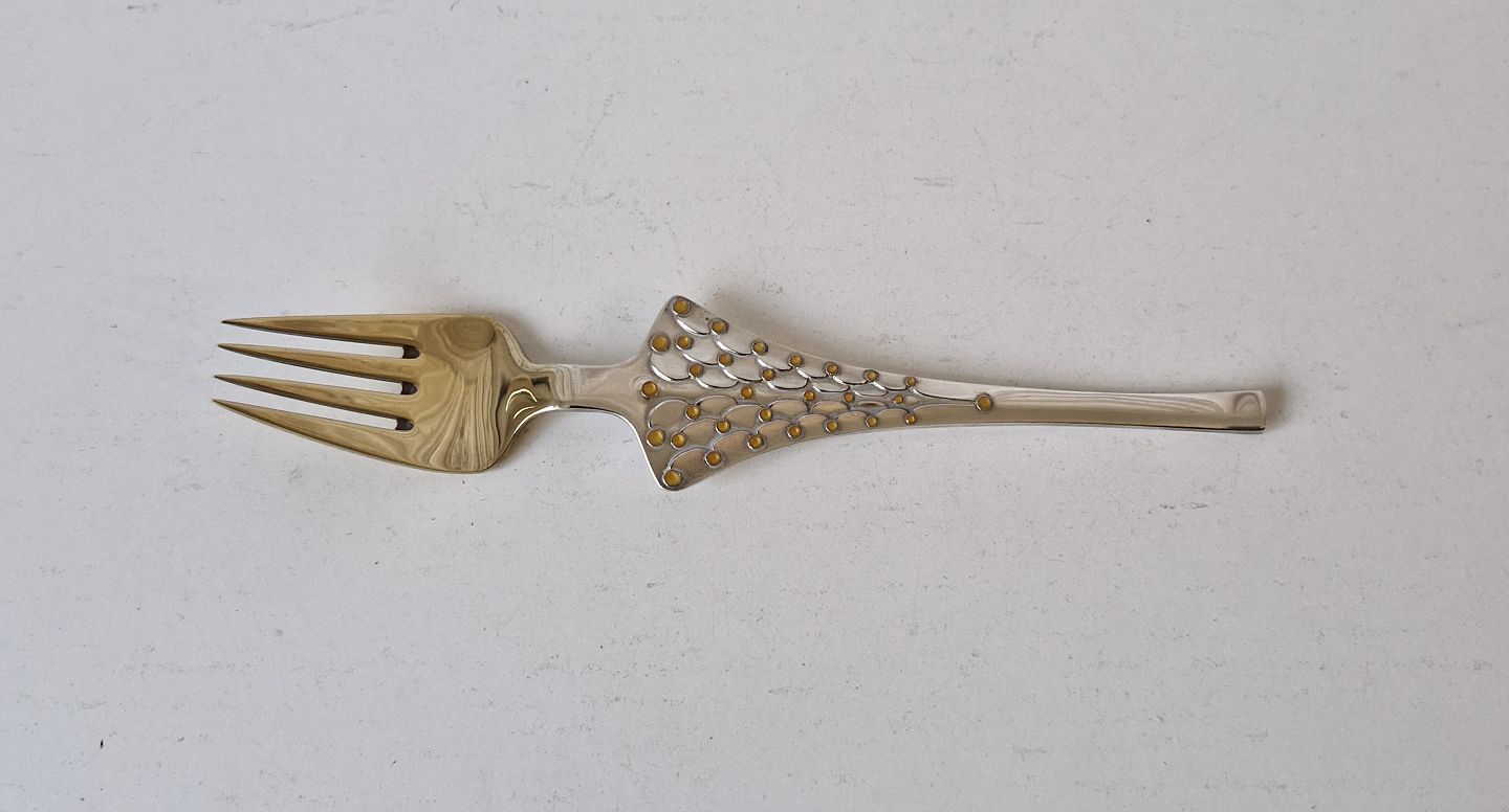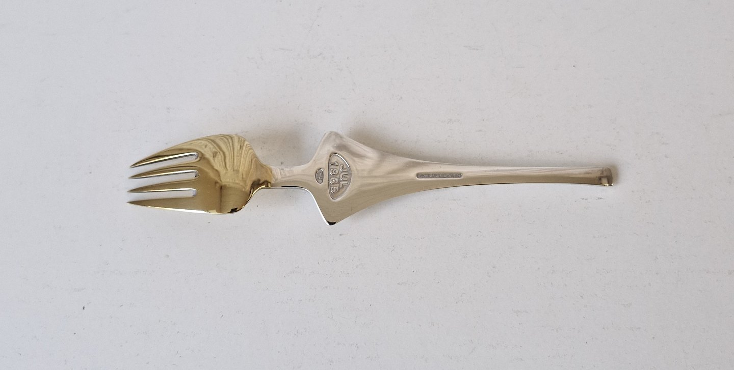 Beskrivelse: A.Michelsen julegaffel i sterlingsølv med emalje 1965