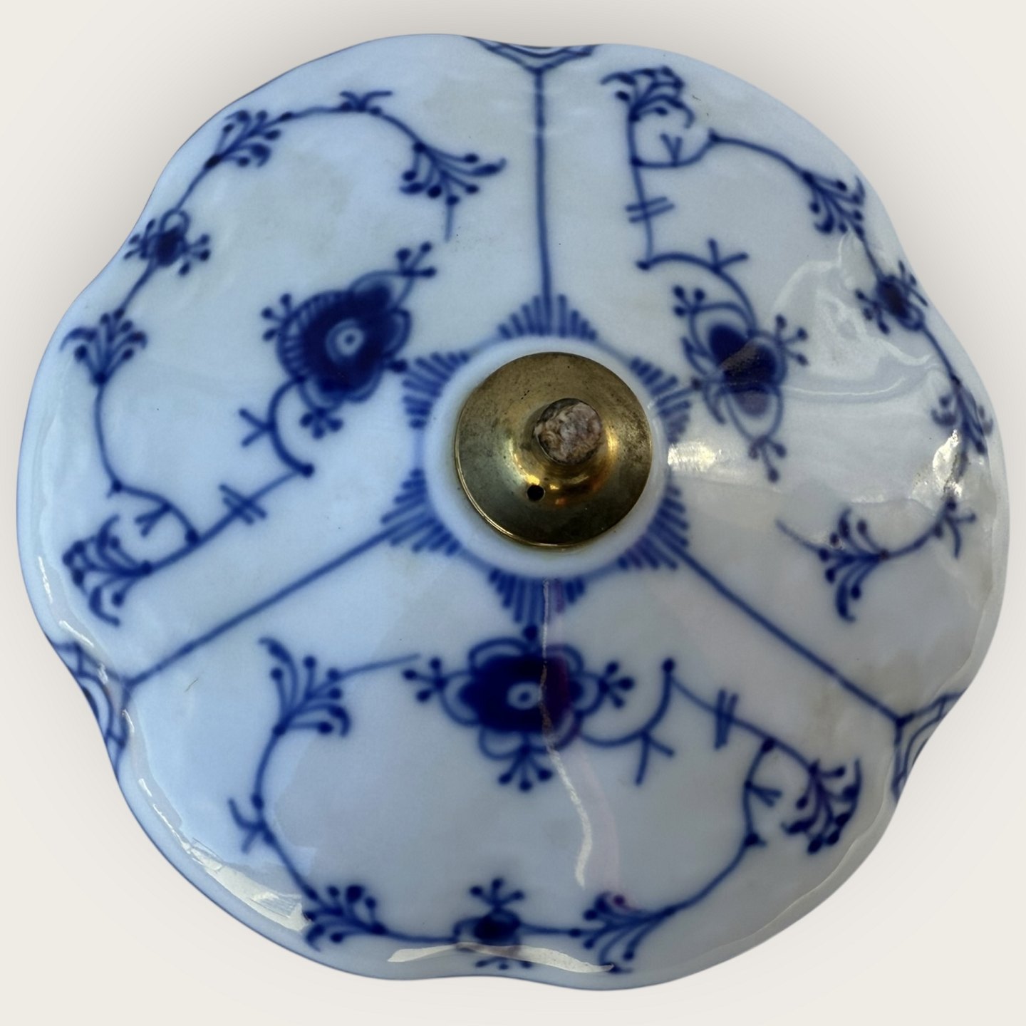 Beskrivelse: Bing & Grøndahl, Blå malet, Musselmalet, Olielampe #373, 12cm i diameter, 1.sortering *Perfekt stand*