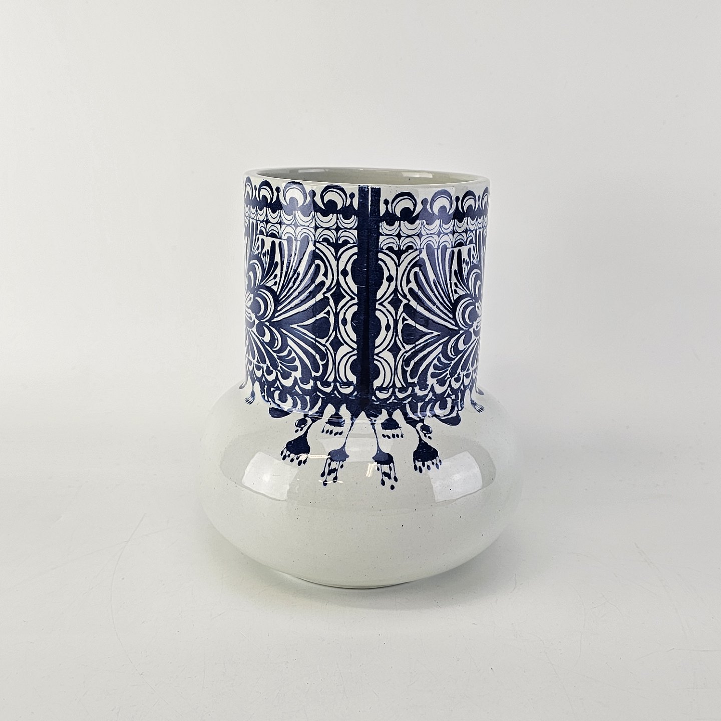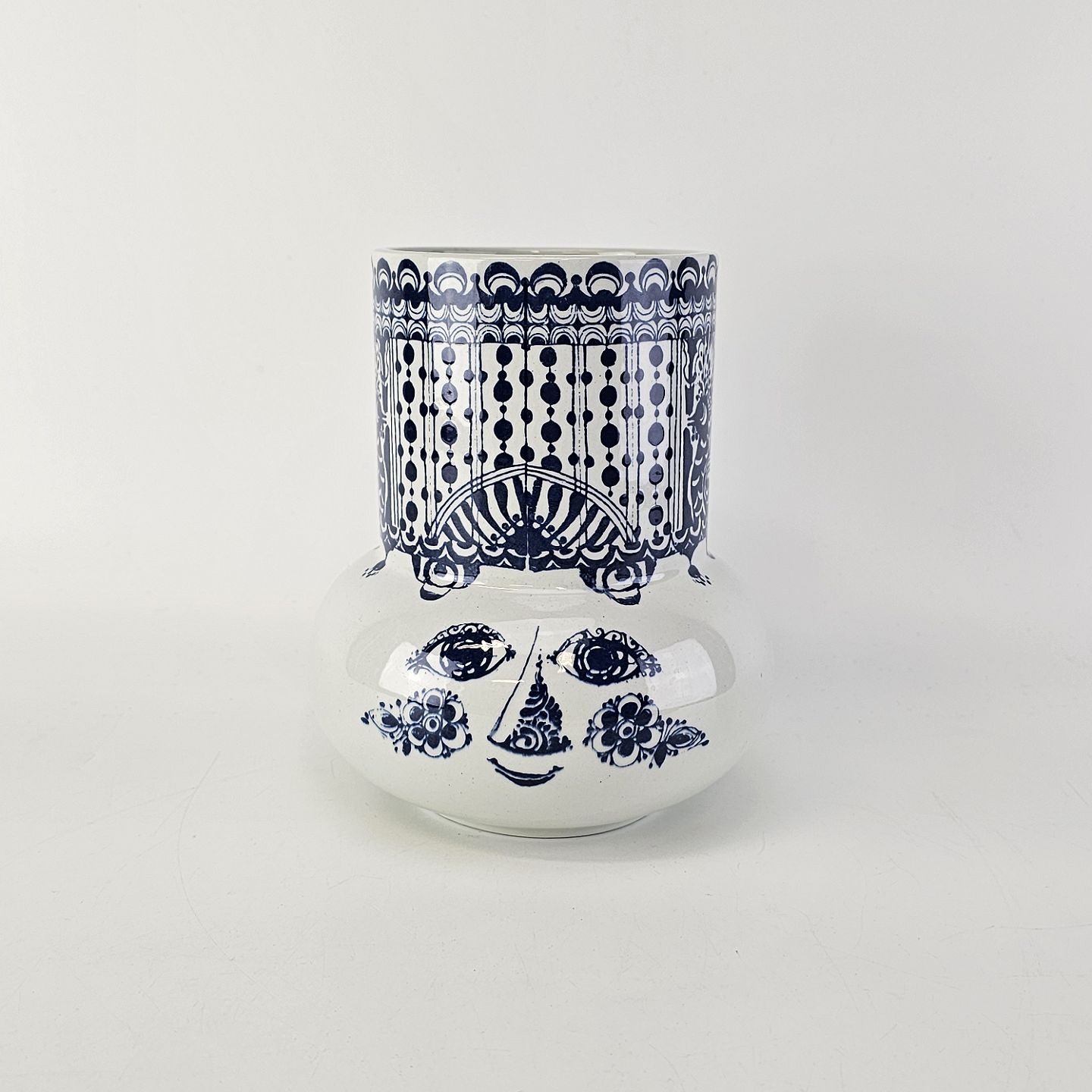 Beskrivelse: Vase i keramik med motiv af et kvindeansigt og mønster