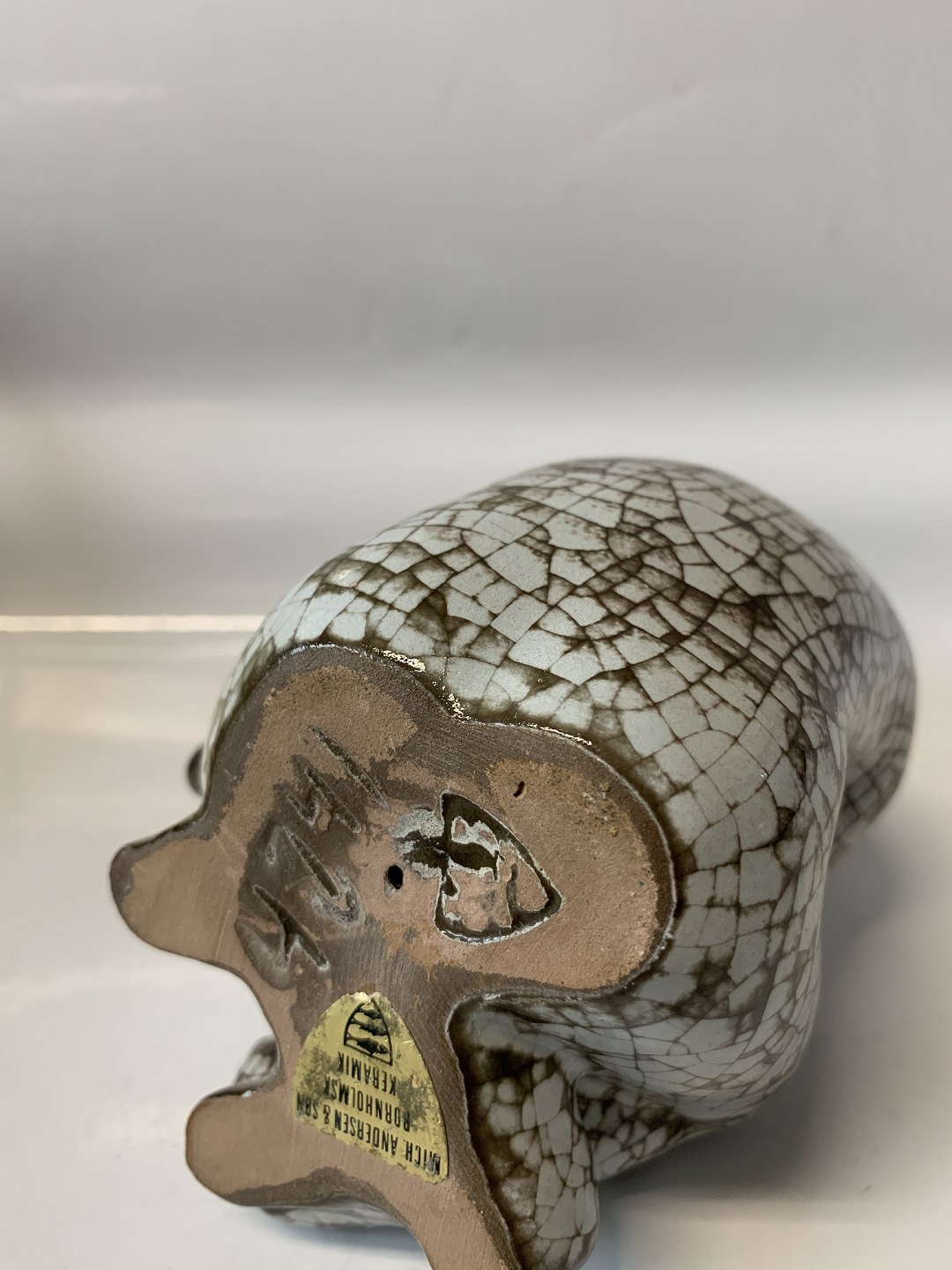 Beskrivelse: Bornholmsk keramik, Michael Andersen, Dreng med hund.