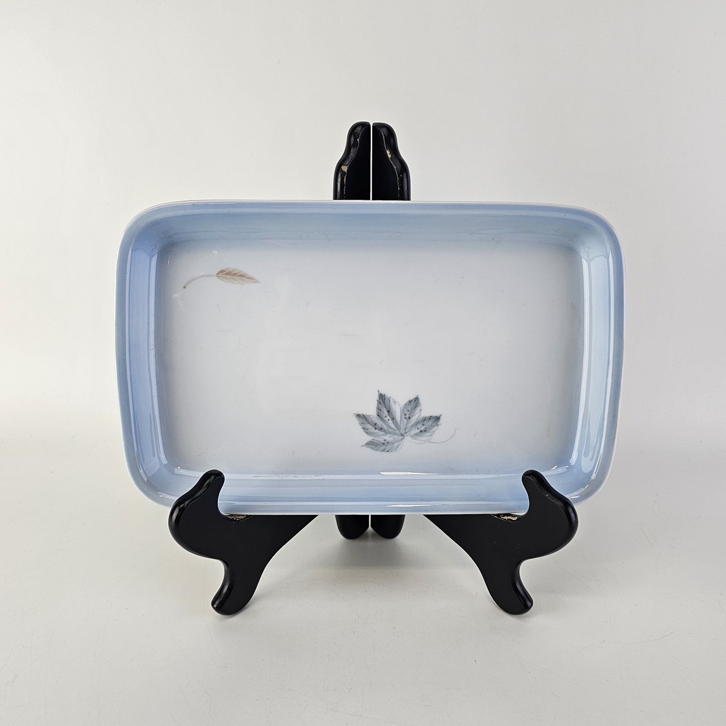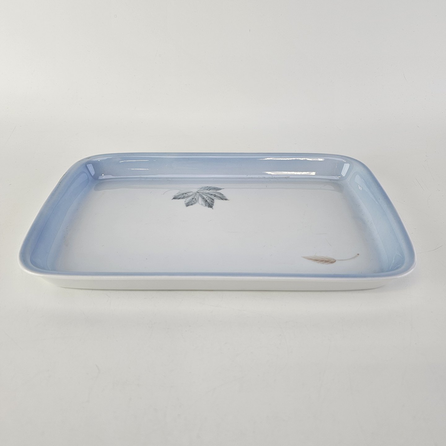 Beskrivelse: Aflangt fad i porcelæn fra stellet Løvfald