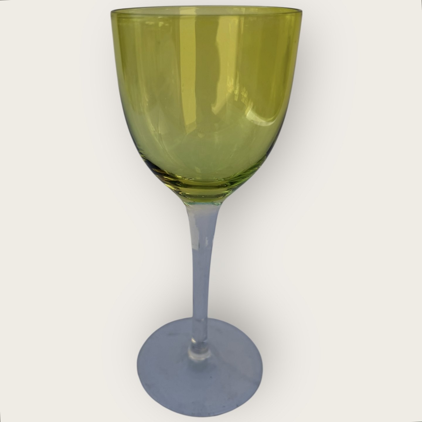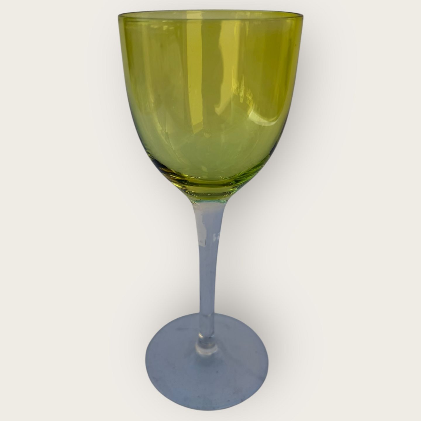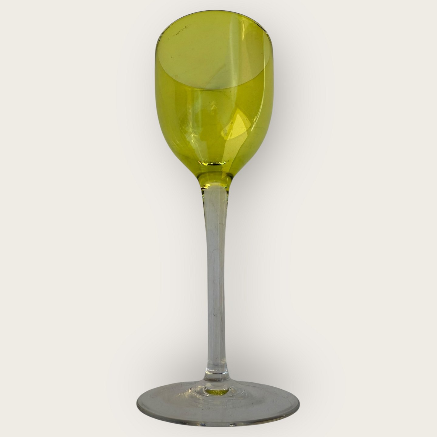 : Baccarat, Perfection, Rhinvins glas på høj stilk og med grøn kumme, 19cm høje, fin stand.