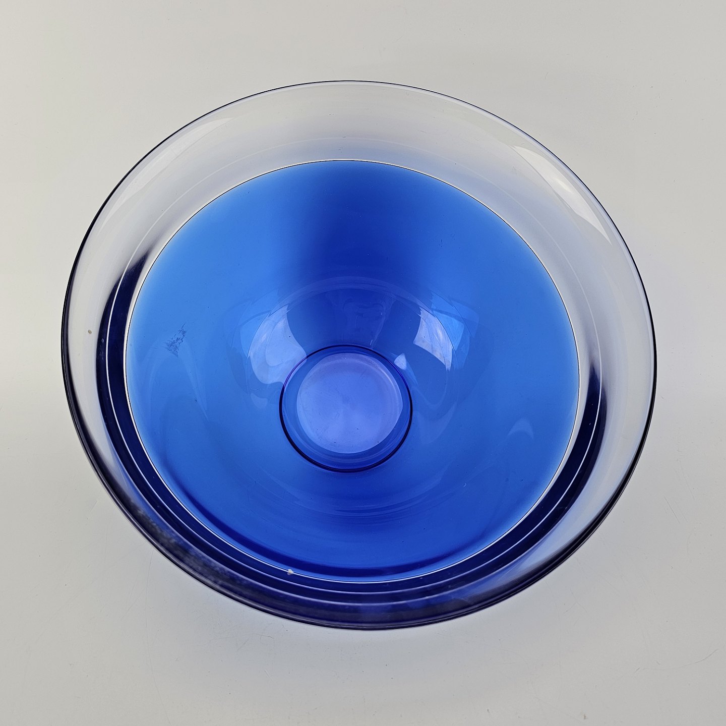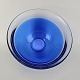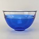 Beskrivelse: Neptunus skål i blåt glas med kant af klart glas