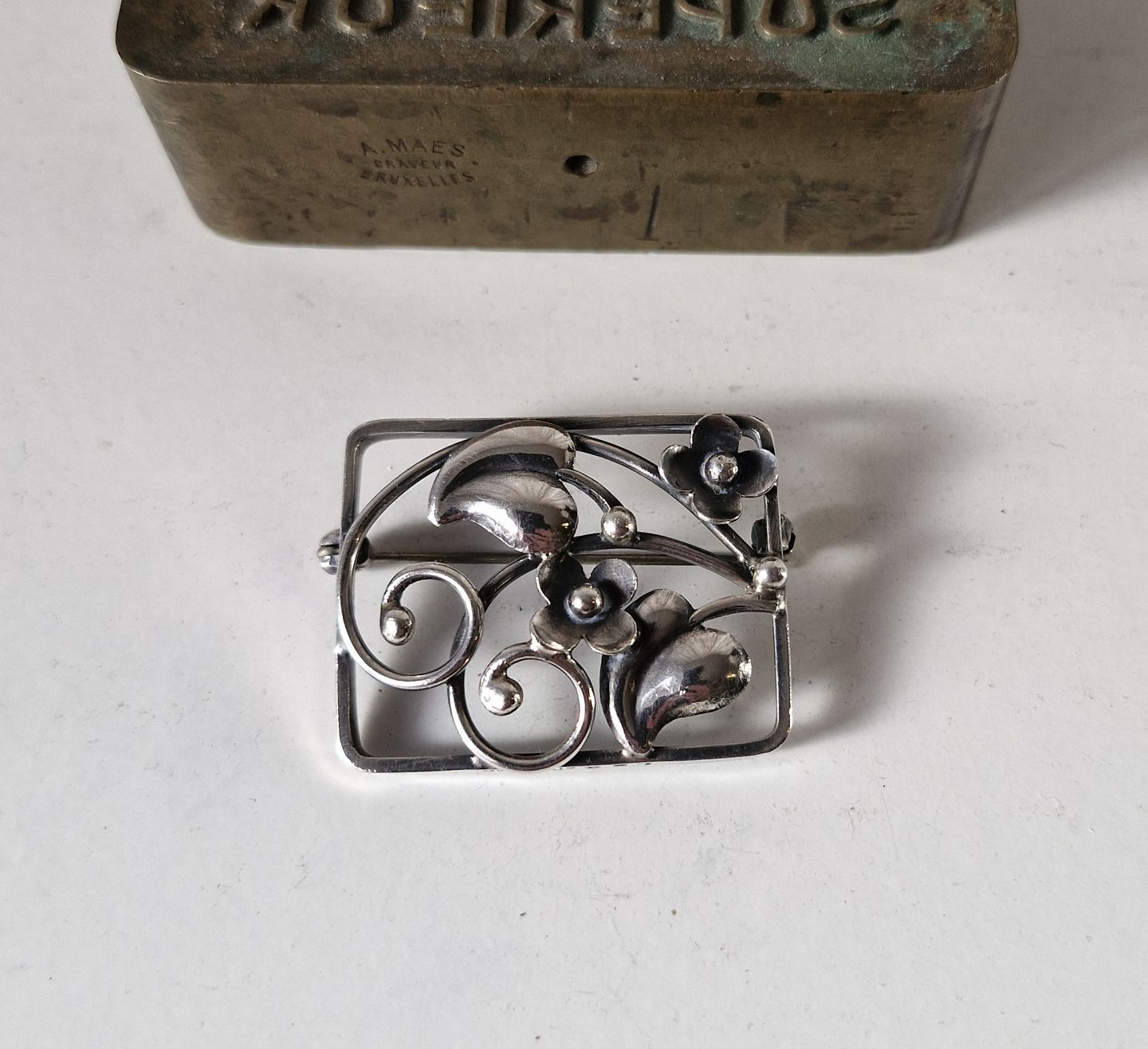 Beskrivelse: Broche i sølv dekoreret med blomster