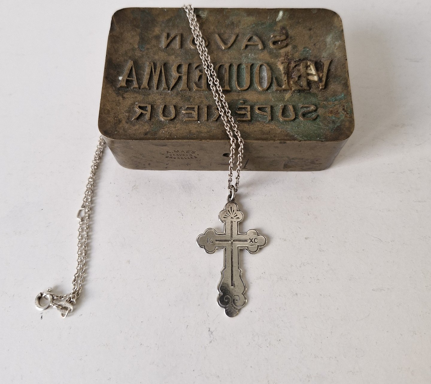 Beskrivelse: Smukt gammelt sølv kors i sølvkæde