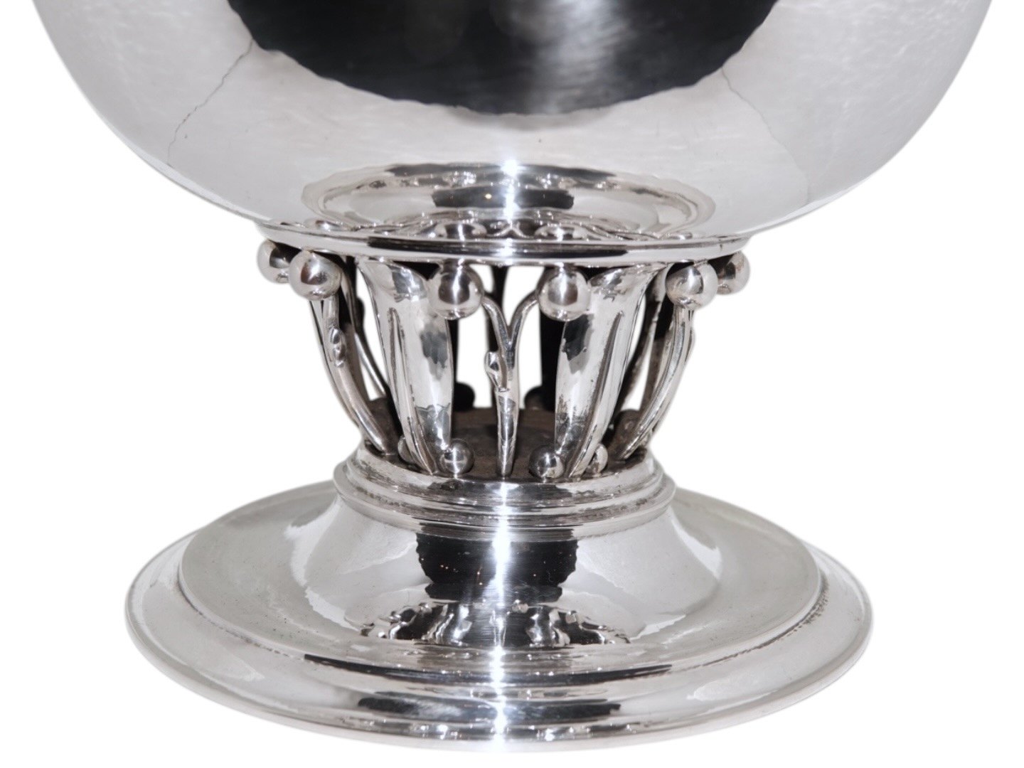 This bowl was designed in 1912 by Georg Jensen himself and in 1914 The Louvre Museum in Paris bought one for their exhibition. Therefore this bowl is called the Louvre bowl.