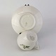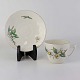 Heimdal er cremefarvet porcelæn i skælform, som dekoreret med jasminblomster, grene og en guldkant.