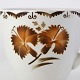 Stel i glat hvid fajance i stelform C med dekoration af brune nelliker og ranker. Stellet blev produceret i perioden år 1930-1941