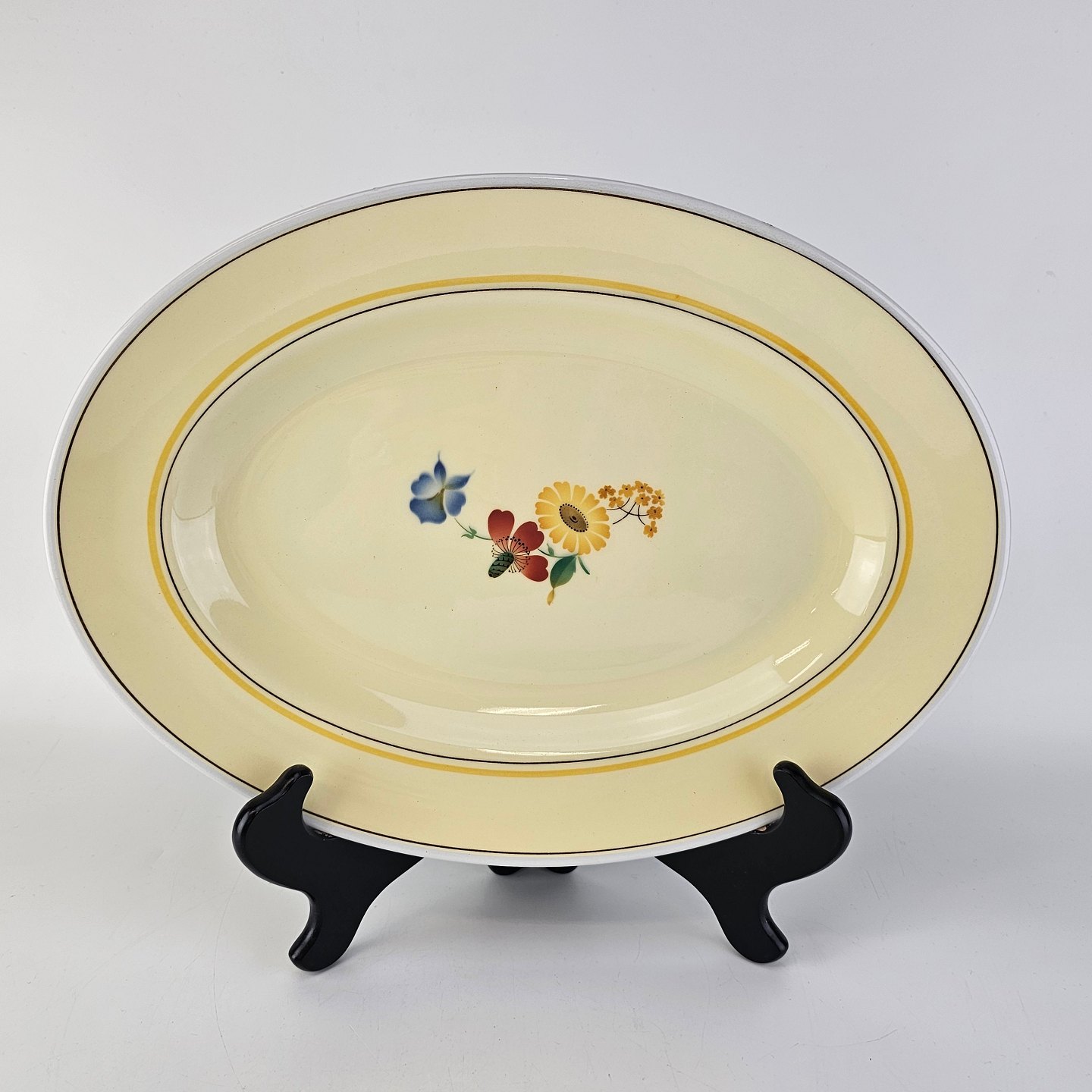 Beskrivelse: Mellem ovalt fad i fajance fra stellet Elisabeth