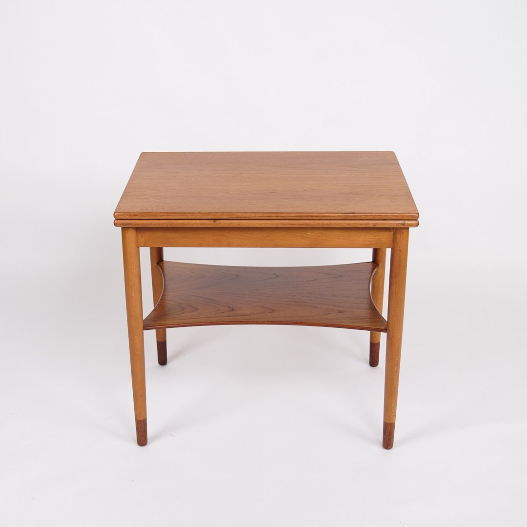 Description: Folding Table designed by Børge Mogensen and produced by Søborg Møbelfabrik in the 1950s. The table is made of teak and beech with fine brass fittings.