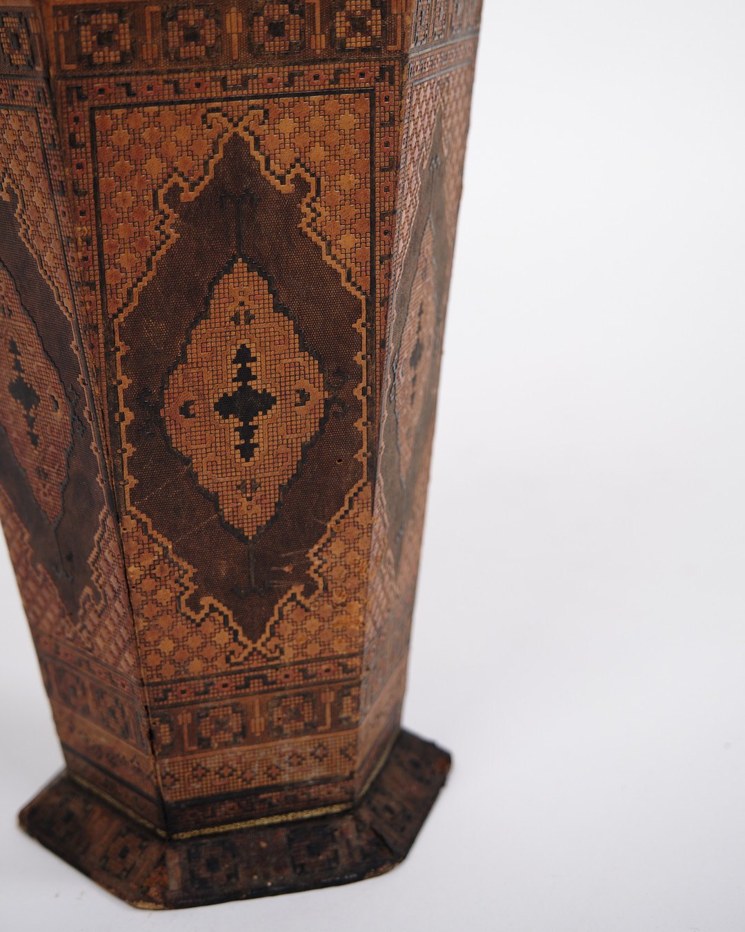 Vase - Dark Wood & Intarsia - Oriental Pattern - 1900s