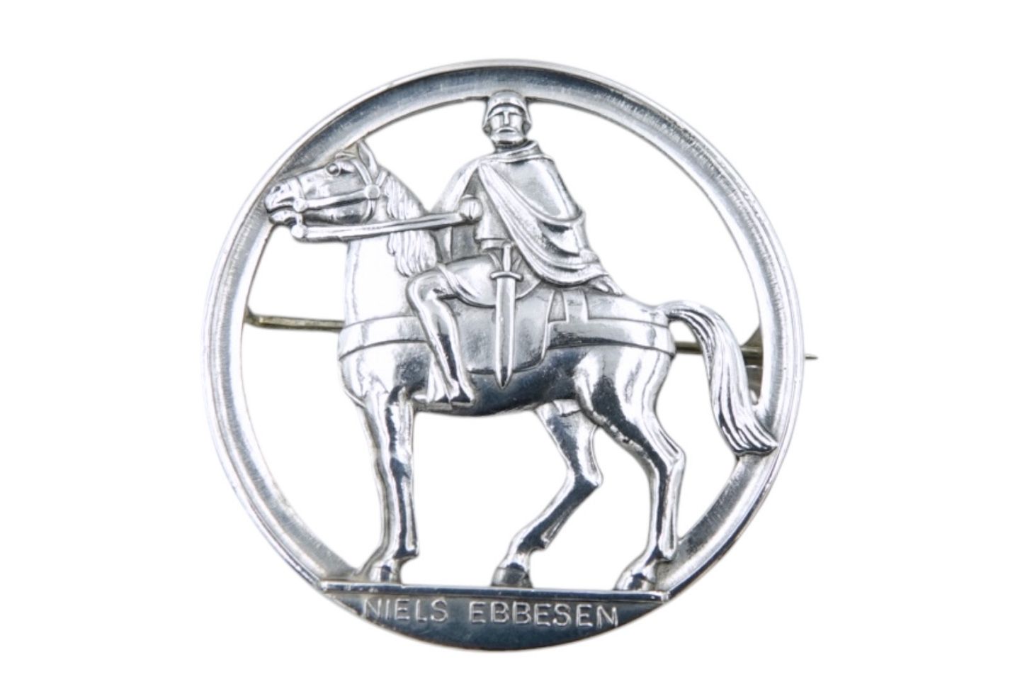 Beskrivelse: Cohr sølv, større Niels Ebbesen broche med mand til hest.