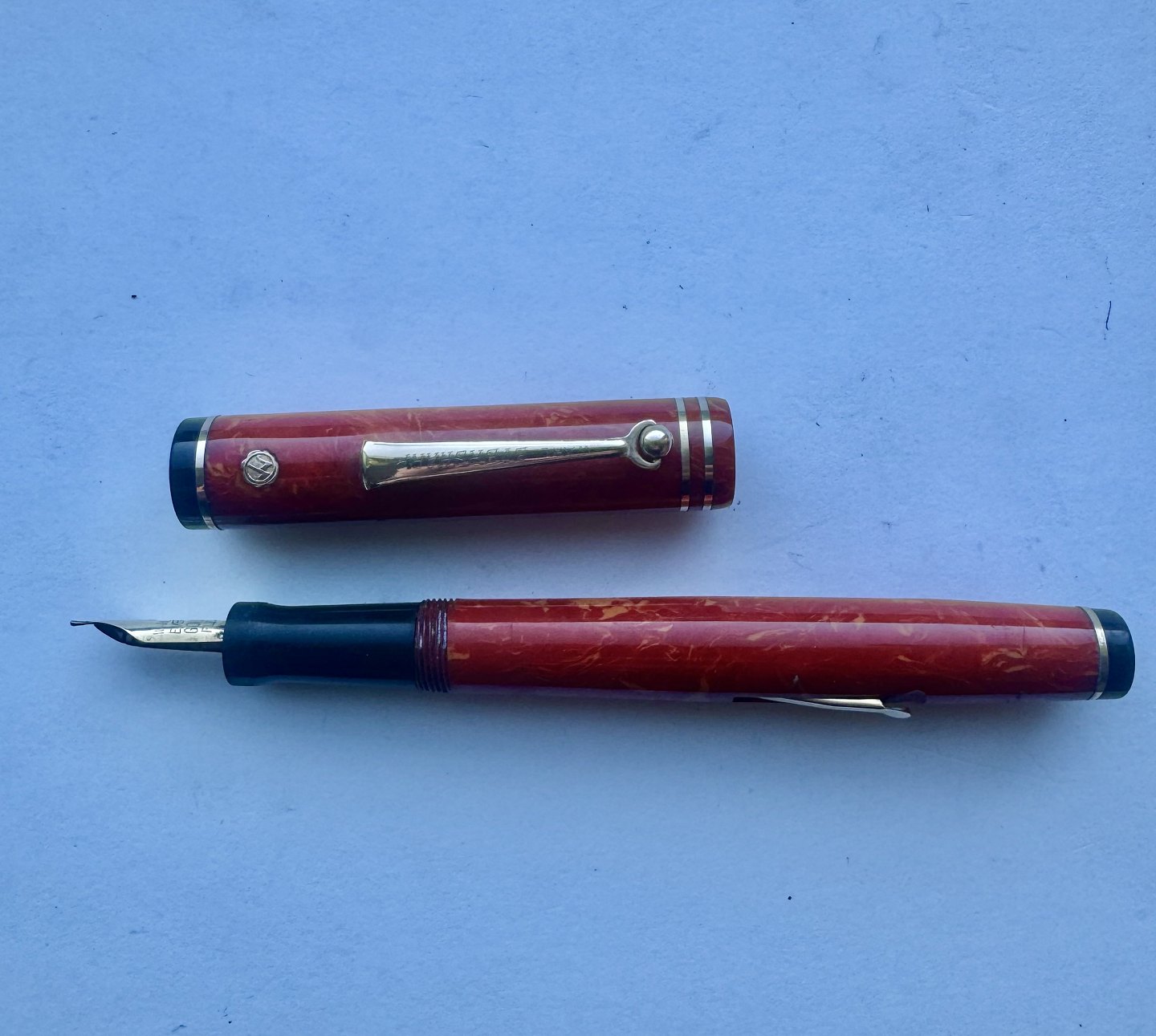 Coral red marbled Wahl Eversharp Gold Seal fountain pen