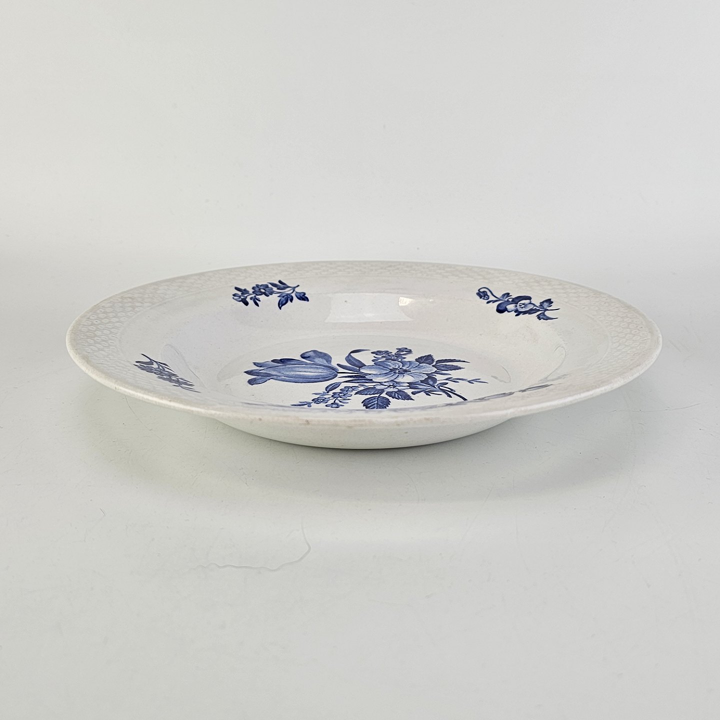 Beskrivelse: Dyb tallerken i fajance fra stellet Blå blomst