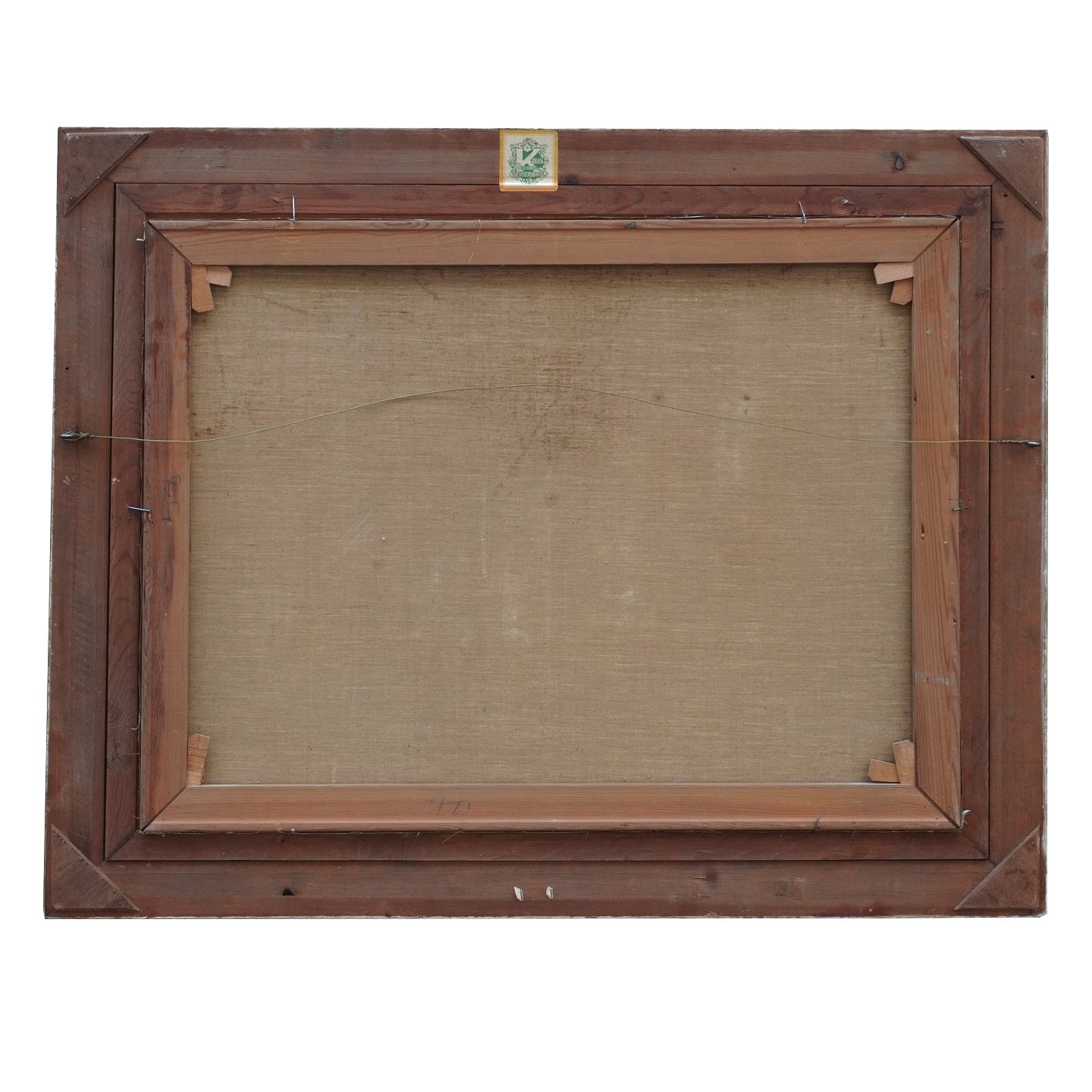 Ole Ring maleri. Ole Ring, 1902-72, olie på lærred. Vinterdag i snedækket landsby. Signeret og dateret 1963. Lysmål: 57x75cm. Med ramme: 76x94cm