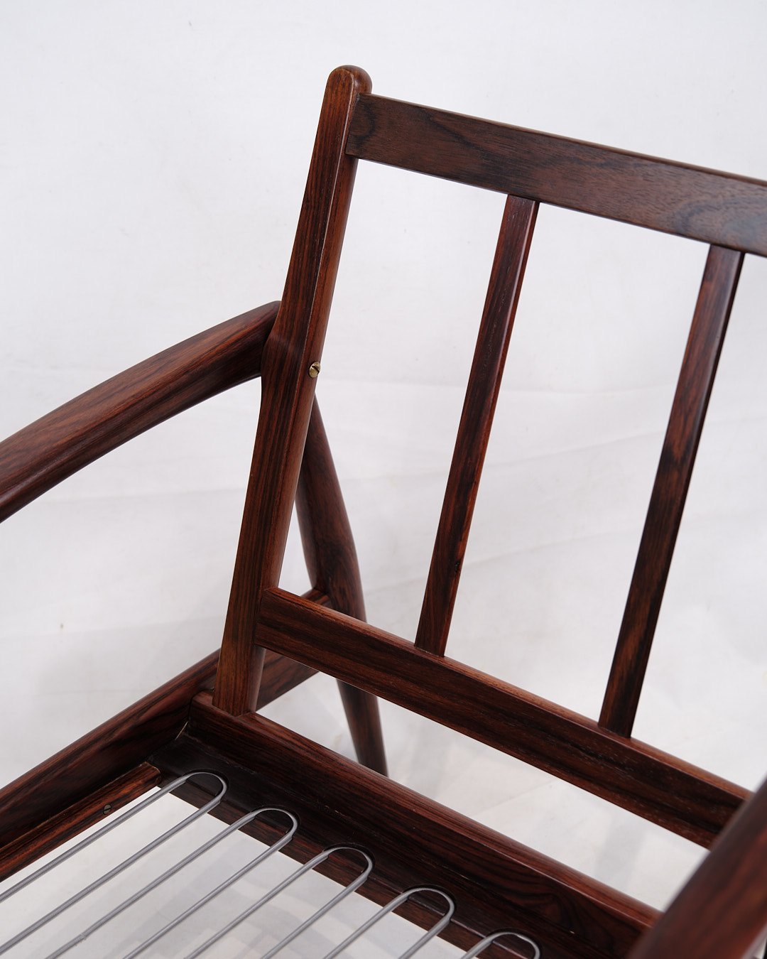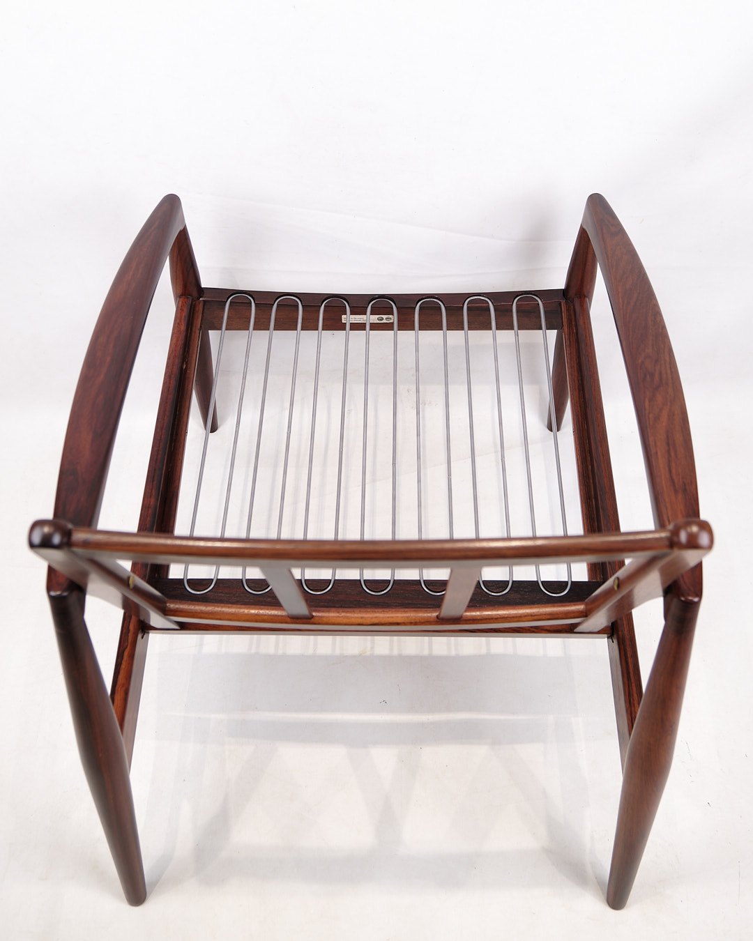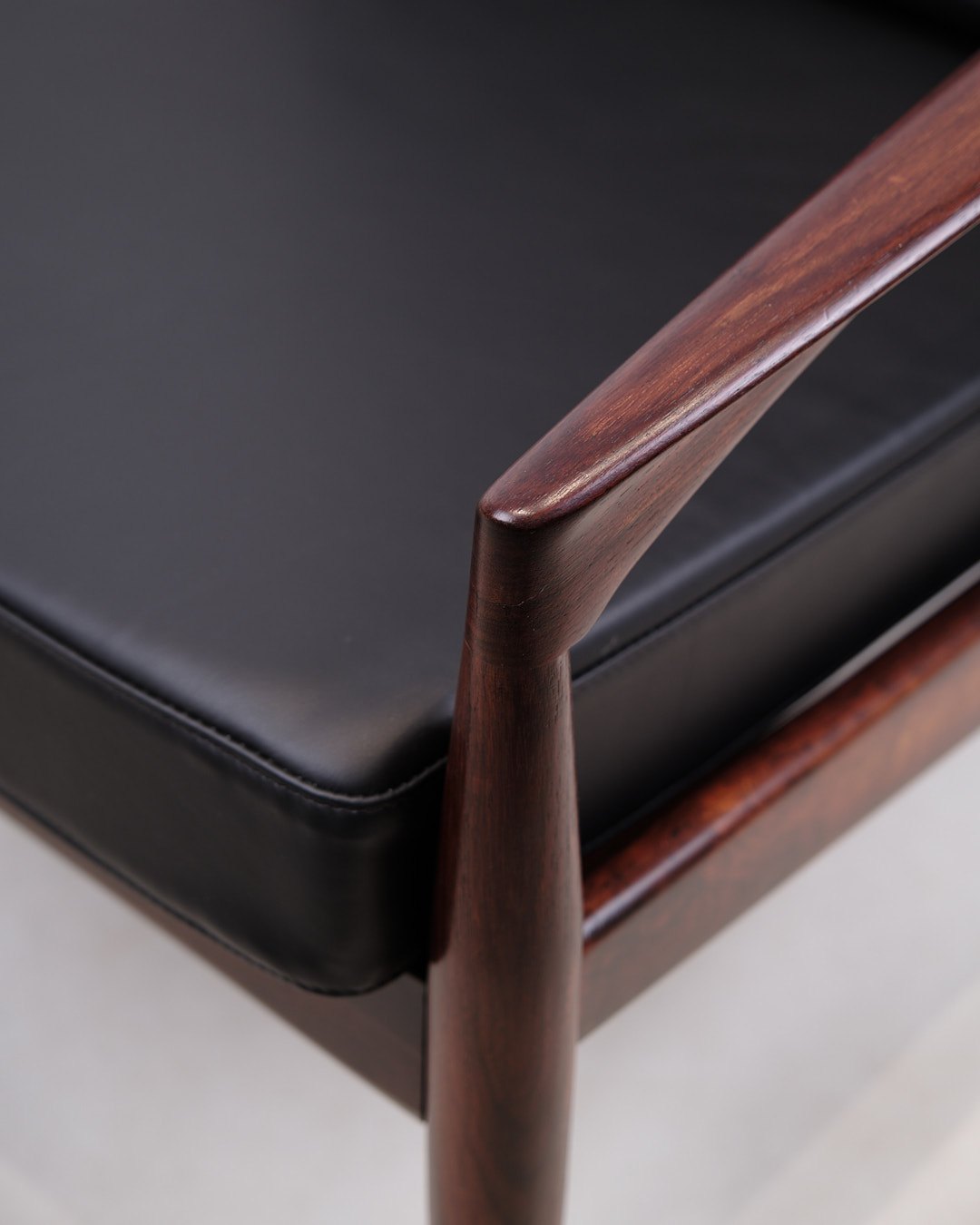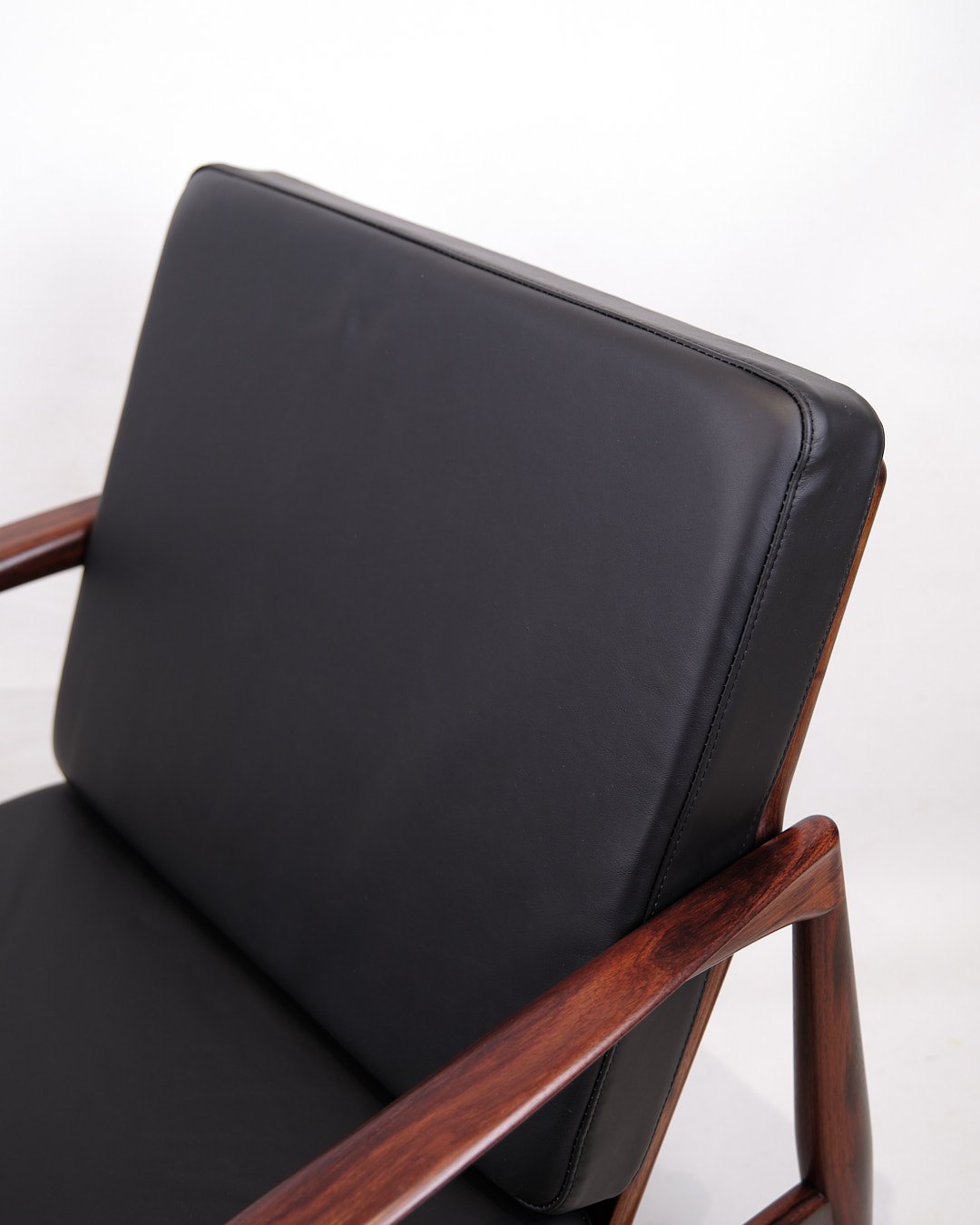 Description: Kai Kristiansen “Paper Knife Chair”, model 121. Rosewood and black leather. Produced by Magnus Olesen, 1950s.