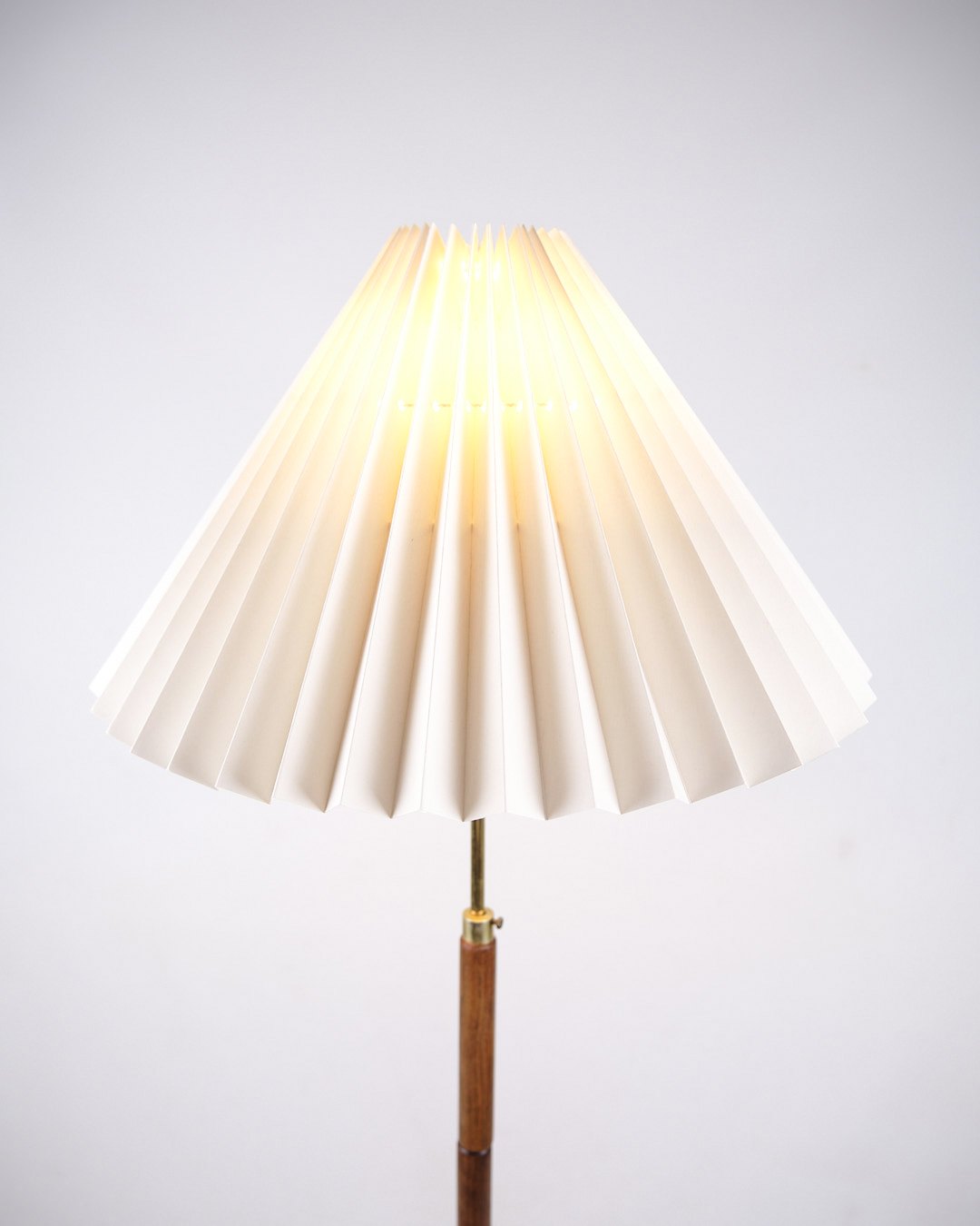 Gulvlampe - Teaktræ - Plisseret Skærm - Dansk Design - 1960erne