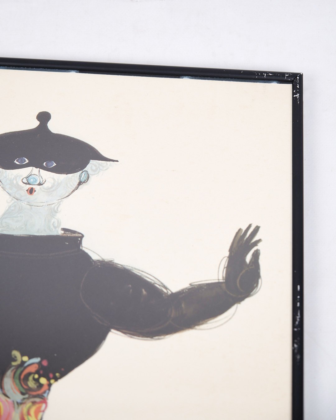 Litografisk Tryk I Sort Ramme - Signeret Af Bjørn Wiinblad