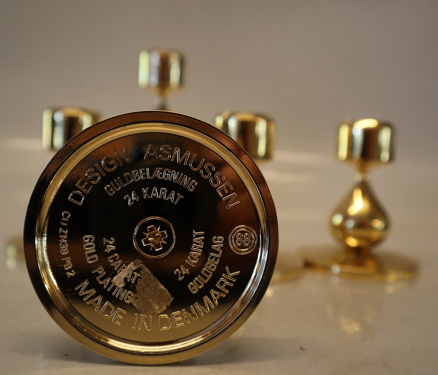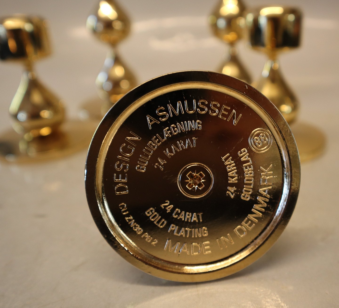 Asmussen Design Lysestager Dråbe Guldbelægning 24 Karat 88 Made in Denmark CU ZN39 PB 2 I fin og hel fejlfri stand