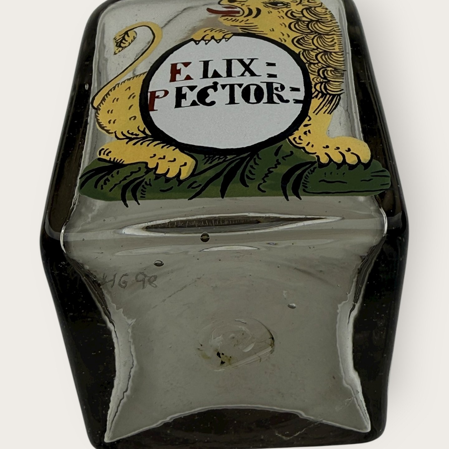 Description: Holmegaard Apothekerflasche von 1998, Elixpector, Maße: 10x6x6cm, die Flaschen sind mundgeblasene Kopien von originalen alten Apothekerflaschen, signiert Hg98.