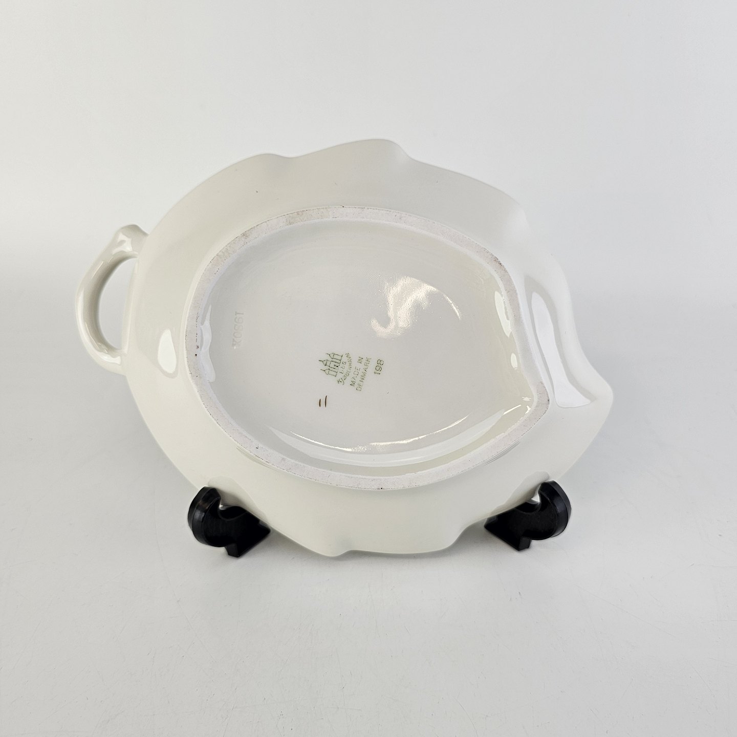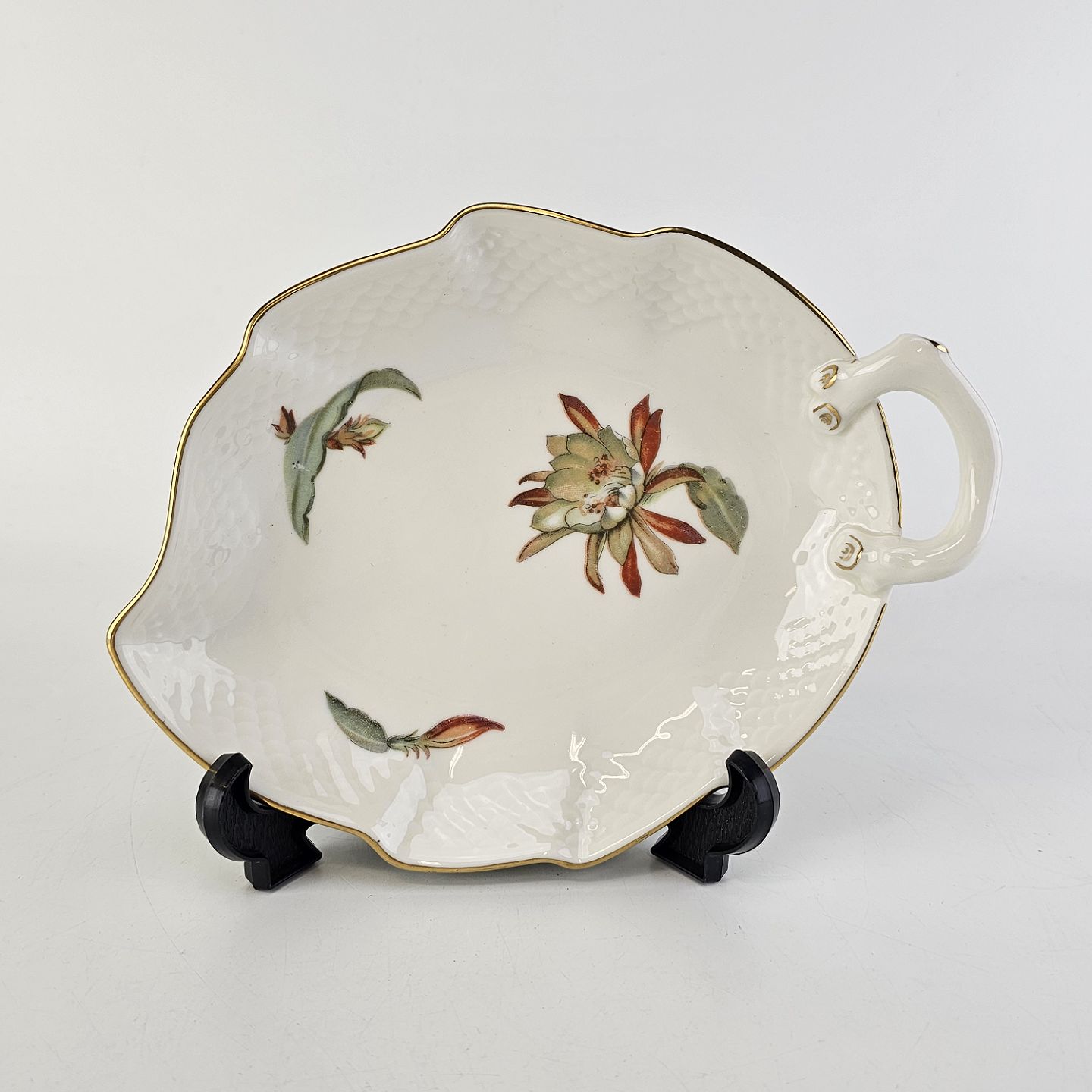 Beskrivelse: Bladformet fad i porcelæn fra stellet Kaktus