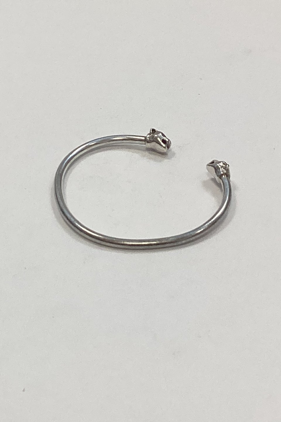 Beskrivelse: Moderne åben Armring i Sterling Sølv med løvehoveder