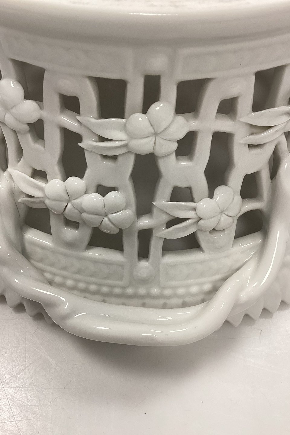 Beskrivelse: Royal Copenhagen Hvid Flora Danica / Perlestel Frugtskål No. 397.