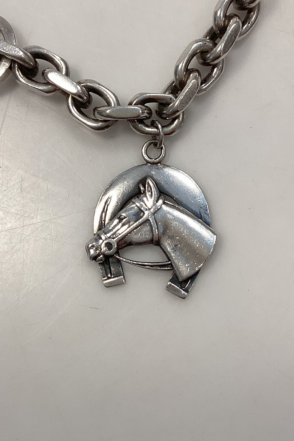 Beskrivelse: Aarre og Krogh Sterling Sølv Armlænke med hestesko vedhæng