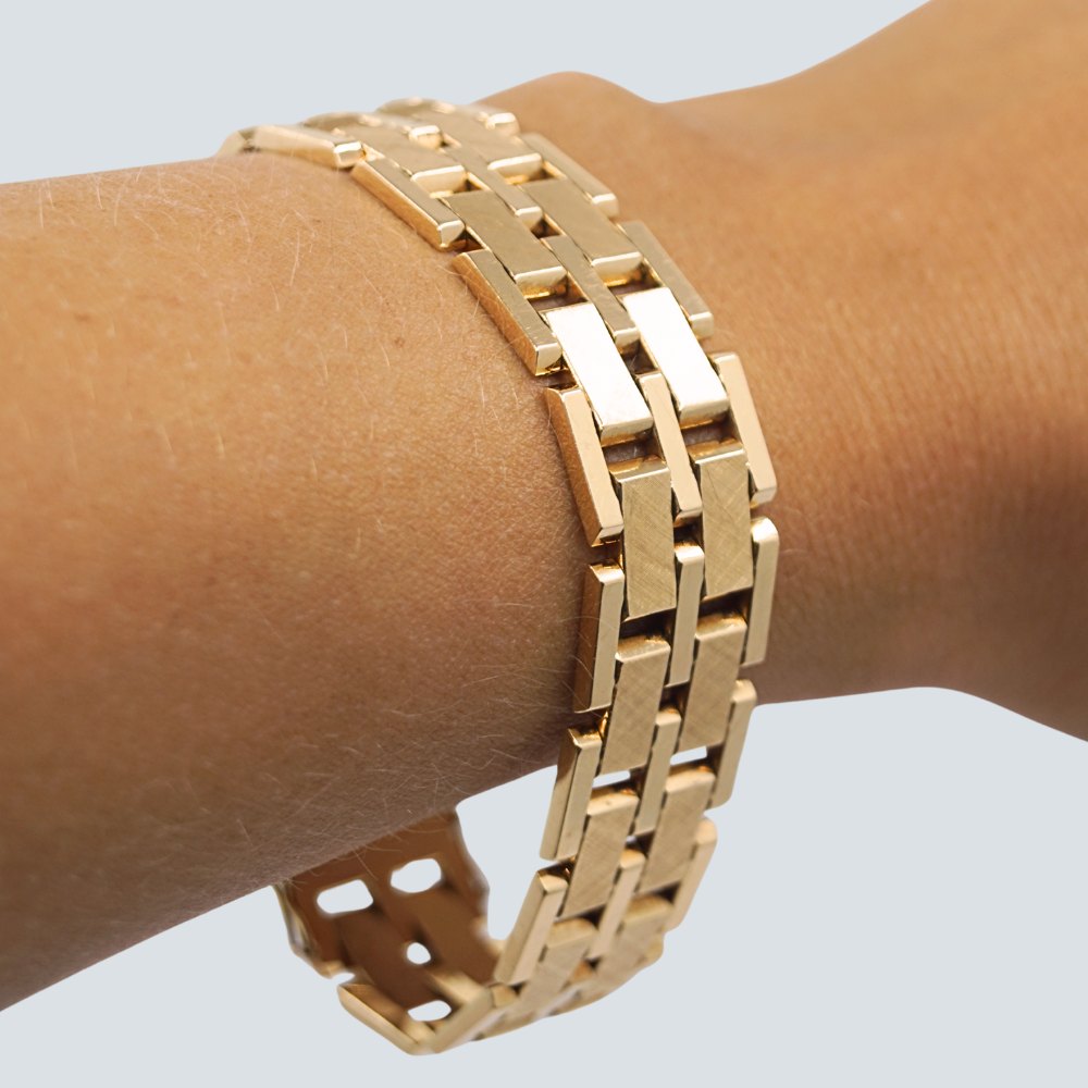 Beskrivelse: Blok armbånd af 14 kt. guld, delvist satineret.