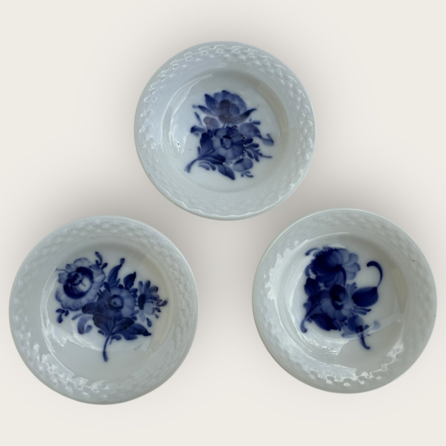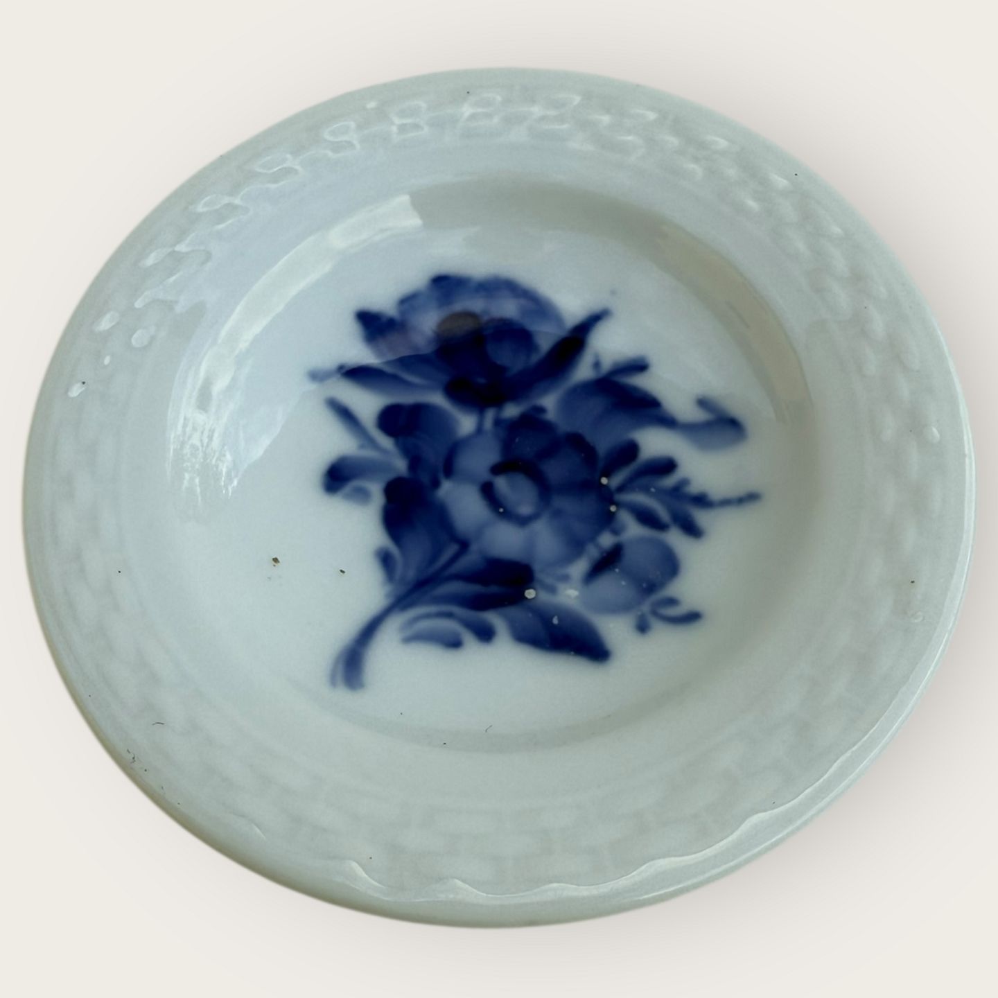 Beskrivelse: Royal Copenhagen, Blå blomst flettet, lille smørskål, 2. sortering, pæn stand, diameter 7,3cm