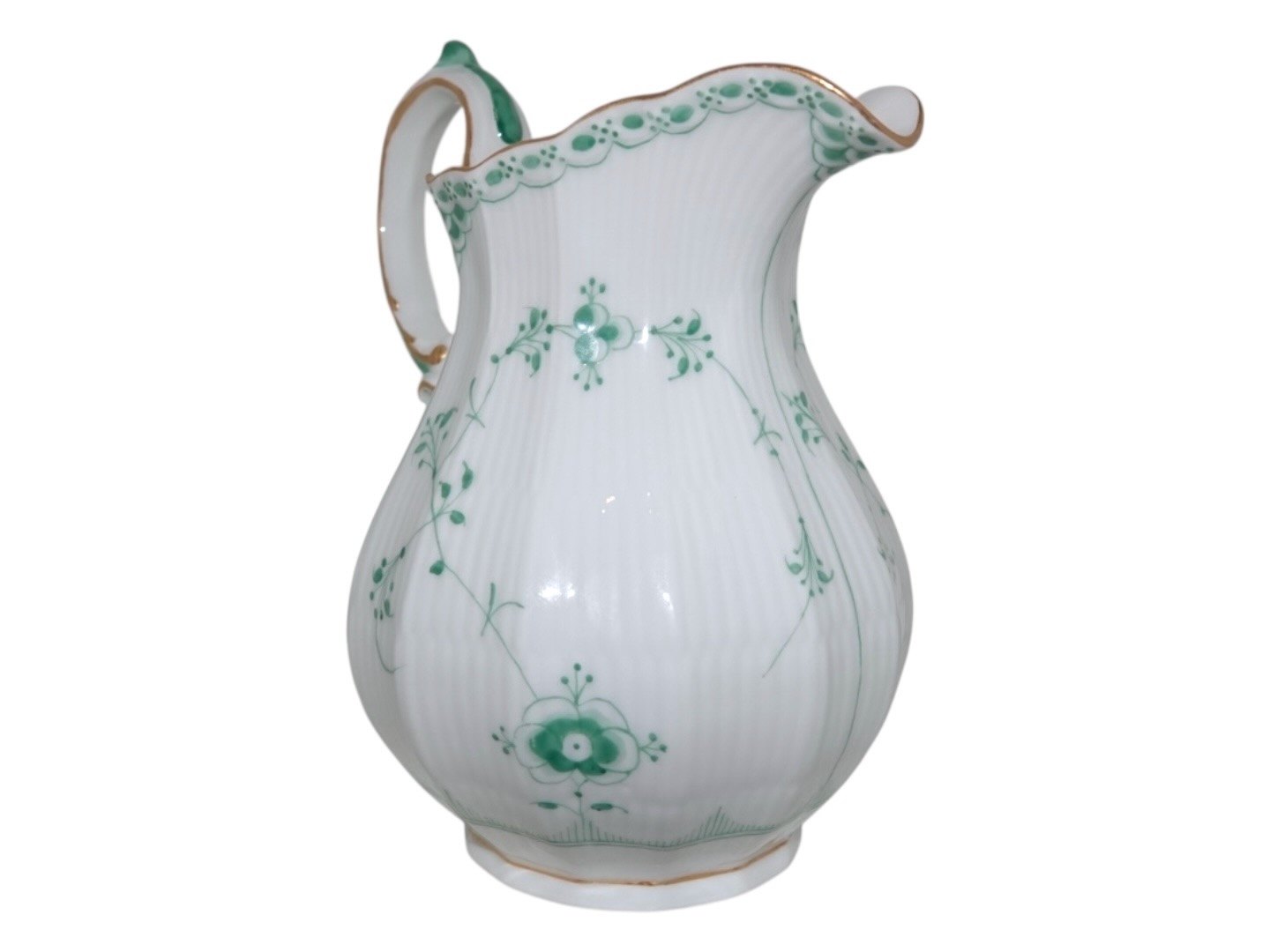 Beskrivelse: Royal Copenhagen Grøn Musselmalet Halvblonde med guldkant, mælkekande.