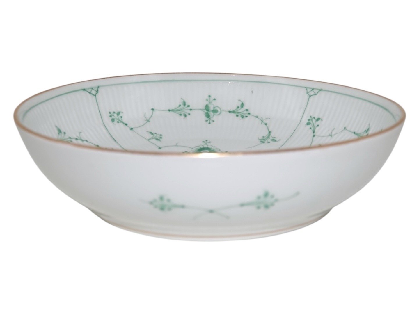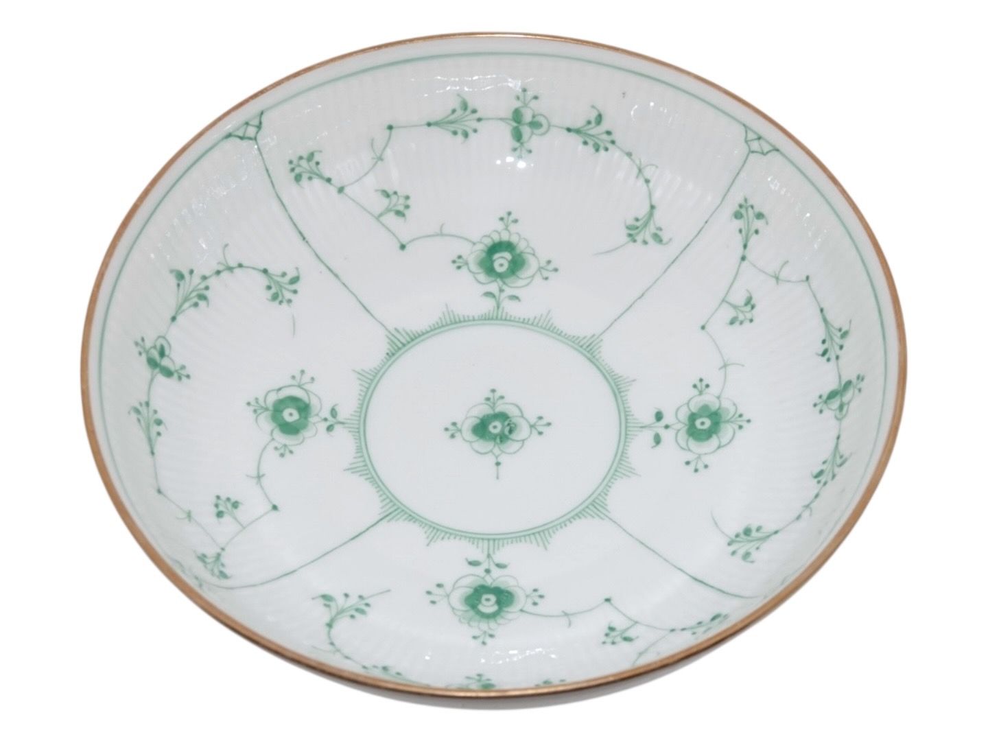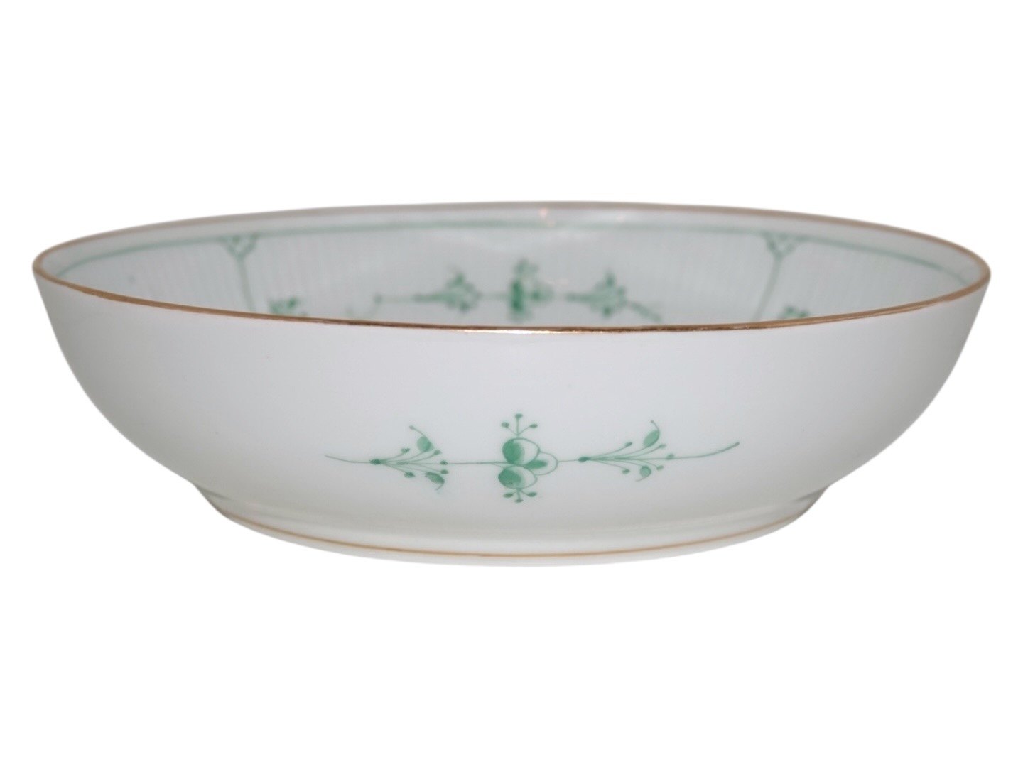 Beskrivelse: Royal Copenhagen Grøn Musselmalet Halvblonde med guldkant, rund skål.
