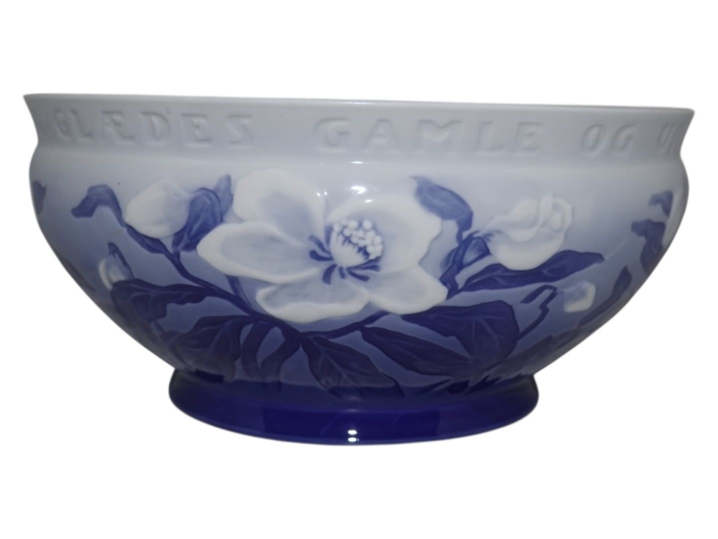 Description: Bing & Grondahl Christmas Rose, rare large bowl with Christmas carol text on side: "JULEN HAR BRAGT VELSIGNET BUD - NU GLÆDES GAMLE OG UNGE".
