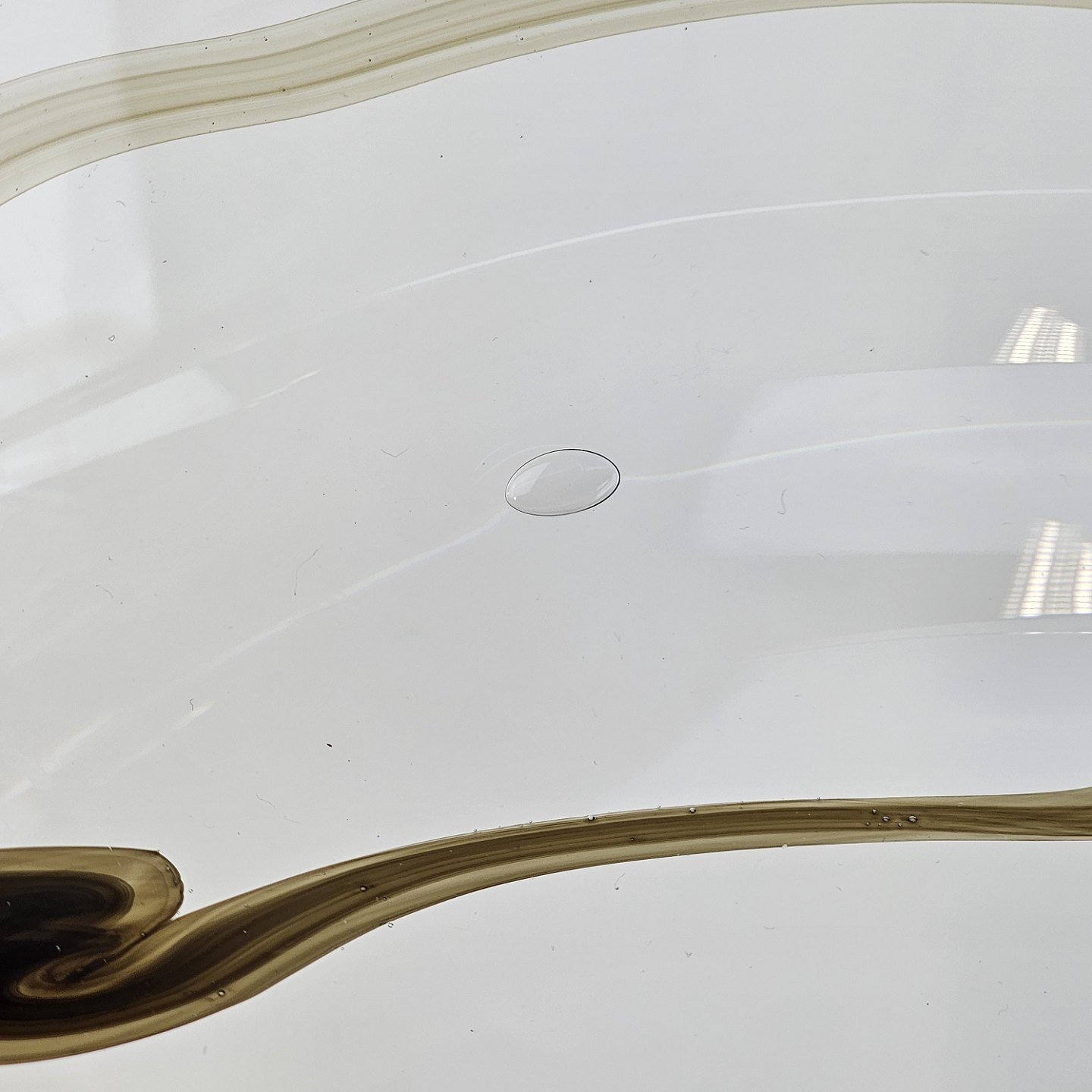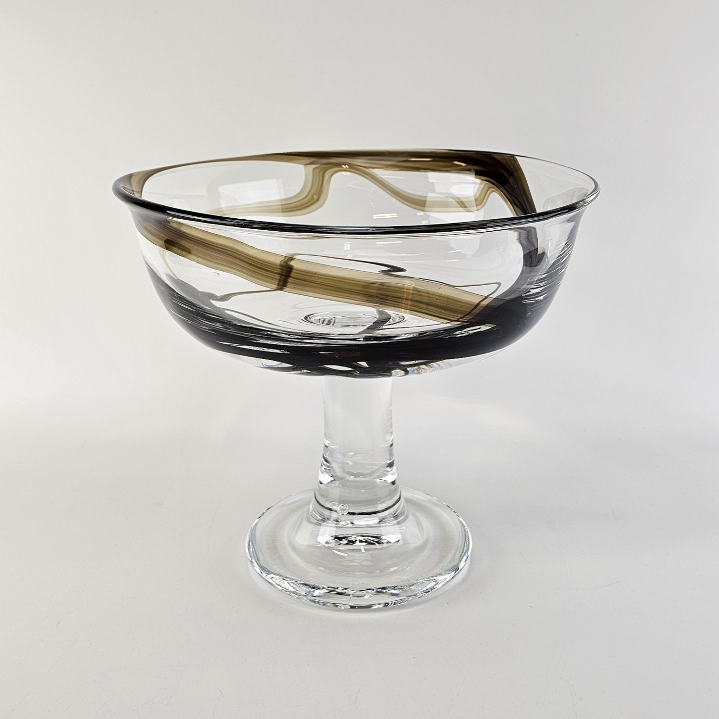 Beskrivelse: Opsats fra serien Tundra i klart glas dekoreret med sorte og brune farver