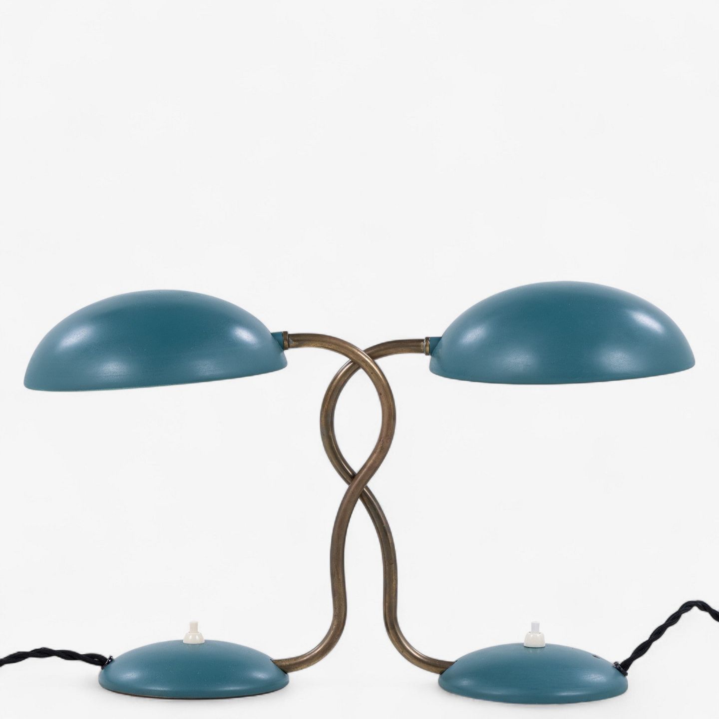 Model E1325 - Bordlampe i grønlakeret metal med justerbar arm i messing.