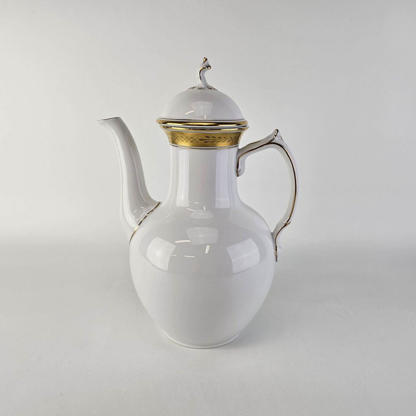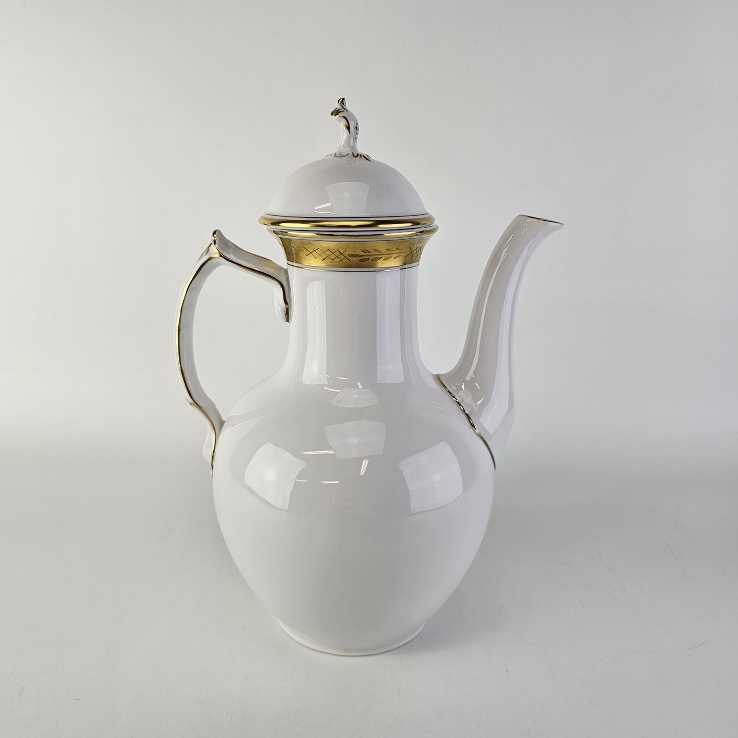 Stel nr. 607 er i hvidt porcelæn og har en guldkant med bladværk