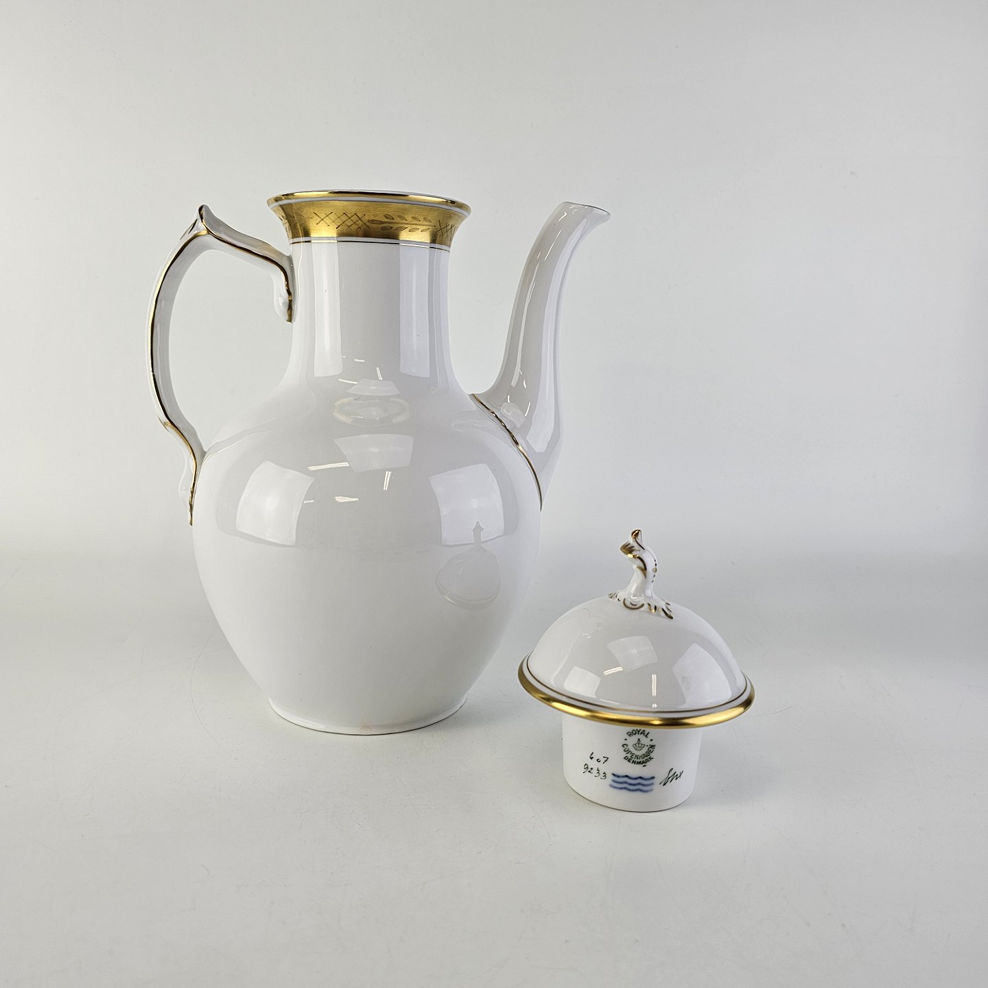 Beskrivelse: Kaffekande i kongeligt porcelæn fra stel nr. 607