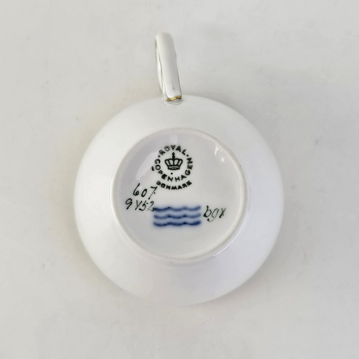 Beskrivelse: Kop med underkop i kongeligt porcelæn fra stel nr. 607